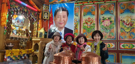 샹그릴라 고성은 300년 티베트 문화가 고스란히 배어있는 곳이다. 옛 차마고도의 중요한 물산 집산지였던 이 곳에서 티베트 전통의상과 의식, 티베트의 식문화 등을 만날 수 있다. 리장의 고성보다 더 고즈넉한 이곳은 2014년 화재로 대부분 소실돼 현재 복구 중이다. 화려하지 않지만 고풍스러운 고성의 중앙에 중국 군사박물관이 세워져 있고 정원에는 중국 군인 조형물이 서있었다. 뉴스에서 보던 티베트인들의 독립 의지를 보여준 분신 시위 현장이 바로 이곳이었다. 중국은 촌스러운 그림으로 이념교육을 시키고 있었다. 티베트족의 독립운동에서 아픈 우리 역사가 떠올랐다.