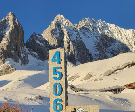 히말라야 산맥의 일부인 옥룡설산은 5,500미터 높이로 사람들이 빙천대세계 케이블카 타고 갈 수 있는 높이는 4506미터 정도. 이뇨작용 강화하는 고산약을 먹었더니 손끝이 찌릿찌릿하다. 고도가 높아지는 케이블카에서부터 굵직한 산소통을 코로 들이마시고 올라갔다. 보이차를 마셔가며 도착하니 눈으로 덮여있는 아름다운 풍광에 빠져들었다. 겹겹이 둘러진 산들 사이로 태양이 빛나고, 4,506미터 표지석에서 기념사진을 찍는데 다리가 무겁다. 고산증세가 나타나지만 그럭저럭 참을 만했다. 바람이 부는 곳에 눈보라가 날리는 옥룡설산은 쉽게 곁을 내주지 않았다. 빨간 잠바를 독 같이 입은 중국 사람들이 종알종알하면서 몰려들고 있어 얼른 내려와 셔틀을 탔다.