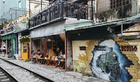 하노이의 명소 기찻길 마을에 도착했다. 하노이 역에서 롱비엔 역까지 실제 기차가 다니는 장소이다. 좁은 기찻길 옆에 있는 화분이 길게 늘어져 있는 작은 상점들이 줄지어 서있다. 실제 현지인들이 살아가며 생활하고 있는 게 신기하다. 기차가 지나는 풍경을 감상하며 주변 카페에서 커피를 마시는 사람들이 많았다. 또한 주말의 기찻길 풍경은 방송국에서 촬영 나온 듯 사람들과 카메라 등의 장비들로 몹시 붐볐다. 이곳의 정서는 우리나라 70년대의 모습인 듯했다.