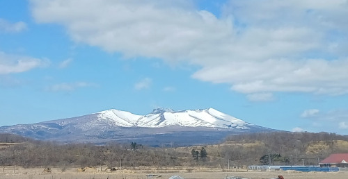 기차 오른편 창가를 보니, 파아란 하늘 아래 하얀 삿포로 산과 애니와 산 등이 길게 호위해주고 있다. 넓은 평지에는 구름이 일어나고, 기찻길 옆에는 여러 색깔과 모양의 집들이 자리 잡고 있다. 하얀 뭉게구름이 둥둥 마을 위에 있다. 신기하게도 홋가이도의 하늘은 지평과 가깝다. 땅이 넓어서인지, 나만의 착각인지 모르겠다.