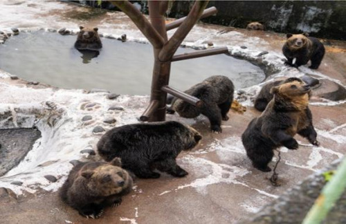 제1목장에는 수컷, 제2목장에는 암컷이 있어 엄청난 크기의 곰이 먹이를 달라고 조르는 모습을 볼 수 있다. 특히, 방문객들이 곰 우리에 들어가 가까이 관찰할 수 있는 인간 우리도 인기 있다. 이곳 자판기에서 한 봉에 1000원짜리 먹이를 사서 곰에게 넣어줄 수 있다. 유리 앞 기계에 먹이를 넣고 쭉 밀어 넣으면 먹이가 우리 안으로 들어가 곰이 먹을 수 있게 했다. 바로 앞에서 곰을 볼 수 있는 곳으로 오히려 인간이 우리 안에 갇혀있는 재미있는 구조다. 로프웨이 역 옆에 있는 작은 건물에서 곰이 상자 속, 나무밑, 높이 그네 위 등에서 숨겨둔 먹이를 찾아먹는 장면을 볼 수 있다.