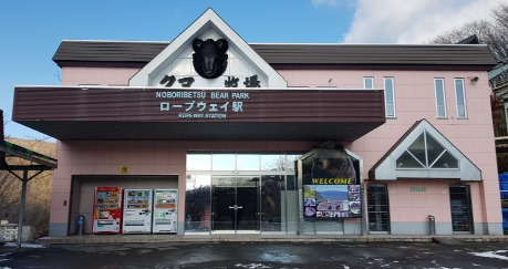 버스에서 내려 지옥곡으로 향하는 길을 따라 올라가니 오른편에 곰목장 표지가 있다. 로프웨이역에 들어서면 2미터 30짜리 박제된 곰이 어서 오세요!라고 인사하고, 곳곳에 곰인형들이 나를 데려가주세요라고 기다리고 있다. 모형 로프웨이와 곰사진들을 지나 해발 550m 시호레이 산 정상까지 약 4분이면 도착한다.