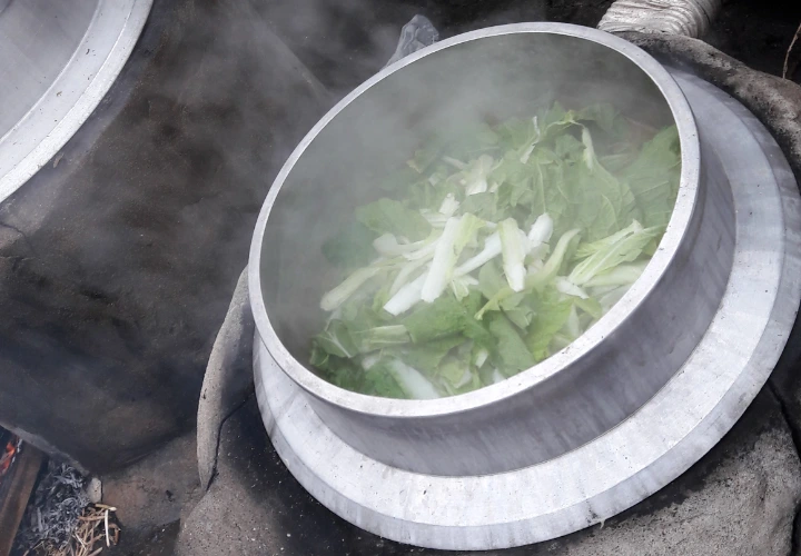 큰 가마솥을 이용하면 가스불에서 요리할때랑 비교해 콕 집어 설명할수 없는 그런 감칠맛이 난다.