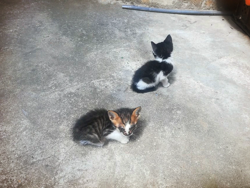"엄마 엄마!밖에 고양이 왔어.새끼도 있어"