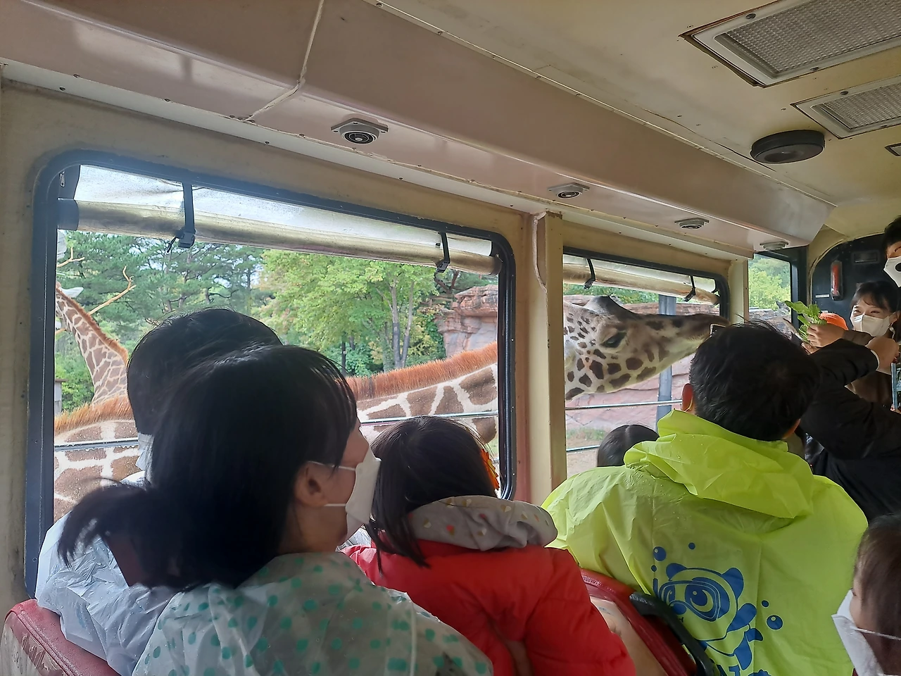 육중한 철문이 열리고, 사자와 호랑이가 으르렁거리고, 곰이 앞발을 들고 있는 숲속에 들어가니 그들의 일상에 내가 들어간 느낌이었다. 로스트 밸리 초원에서는 코끼리, 코뿔소, 일런드(영양), 낙타, 알파카 친구들을 만날 수 있었다. 얼룩말은 여기서도 뒷발질을 하고 있었고, 기린은 우리 버스 안으로 고개를 들이밀고 상추를 우적 되고 있었다. 500킬로그램에 달하는 말을 매일 접하는 나에게도 가슴 뛰는 경험이었다. 도시에서 사는 어른들에게는 더욱 인상적인 추억이 되었을 것 같았다. 곰돌이 모자를 쓰고, 할로윈 호박 우비를 입은 어린이들은 말할 필요도 없다.
