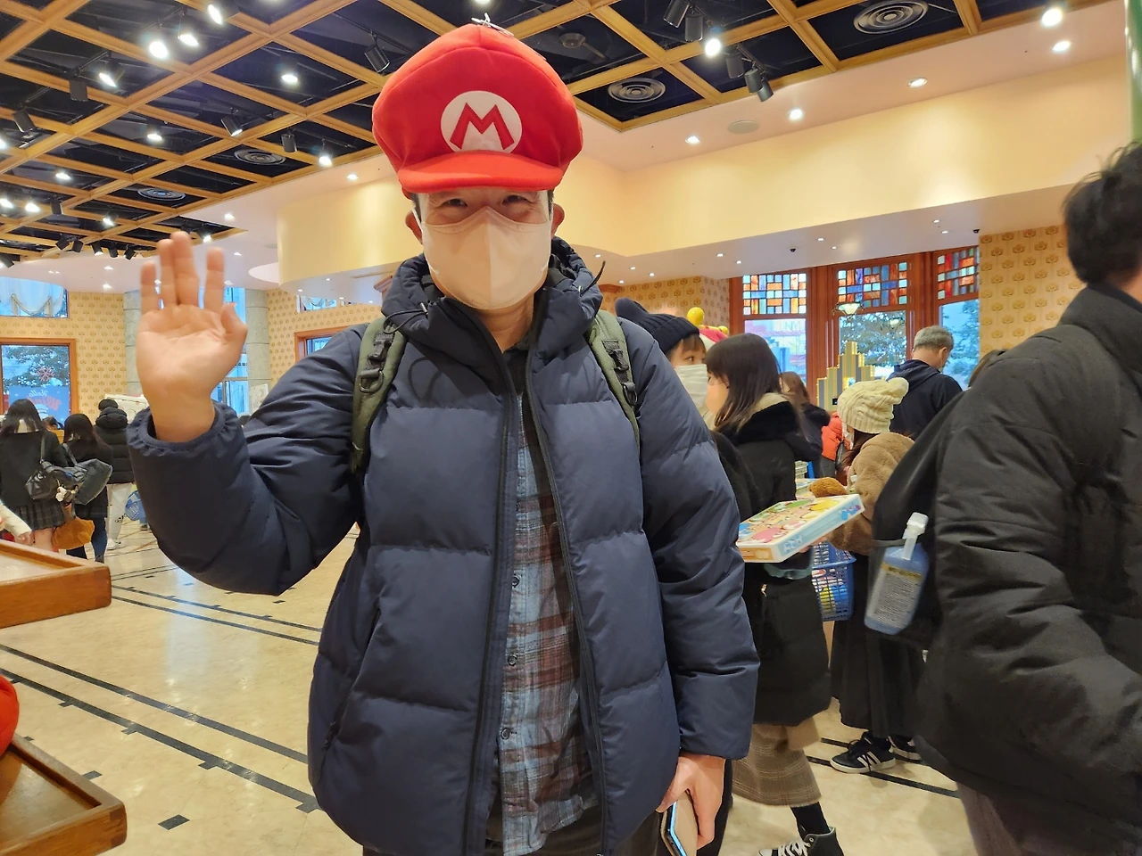 8시 30분경에 입장하기 시작했다. 입구를 지난 뒤에는 뛰기 싫어도 뛸 수밖에 없고, 닌텐도 월드가 어디 있는지 고민할 필요도 없었다. 주위에서 모두 한곳으로 달리고 있으므로 나도 모르게 발이 움직였다. 생면부지에다가 피부색까지 다른 사람들이지만 왠지 모르게 경쟁심이 발동했다. 같이 간 우리 일행 8명 중에도 중학교 졸업반 남학생이 2명 있었지만, 난 걔네들보다도 앞서서 달렸다. 내 마음은 간절했다. 마리오, 마리지 형제와 피치 공주, 쿠파의 석조상을 실물 영접하고 싶었다. 3D로 재현된다는 마리오카트 트랙을 꼭 경험해야만 했다.