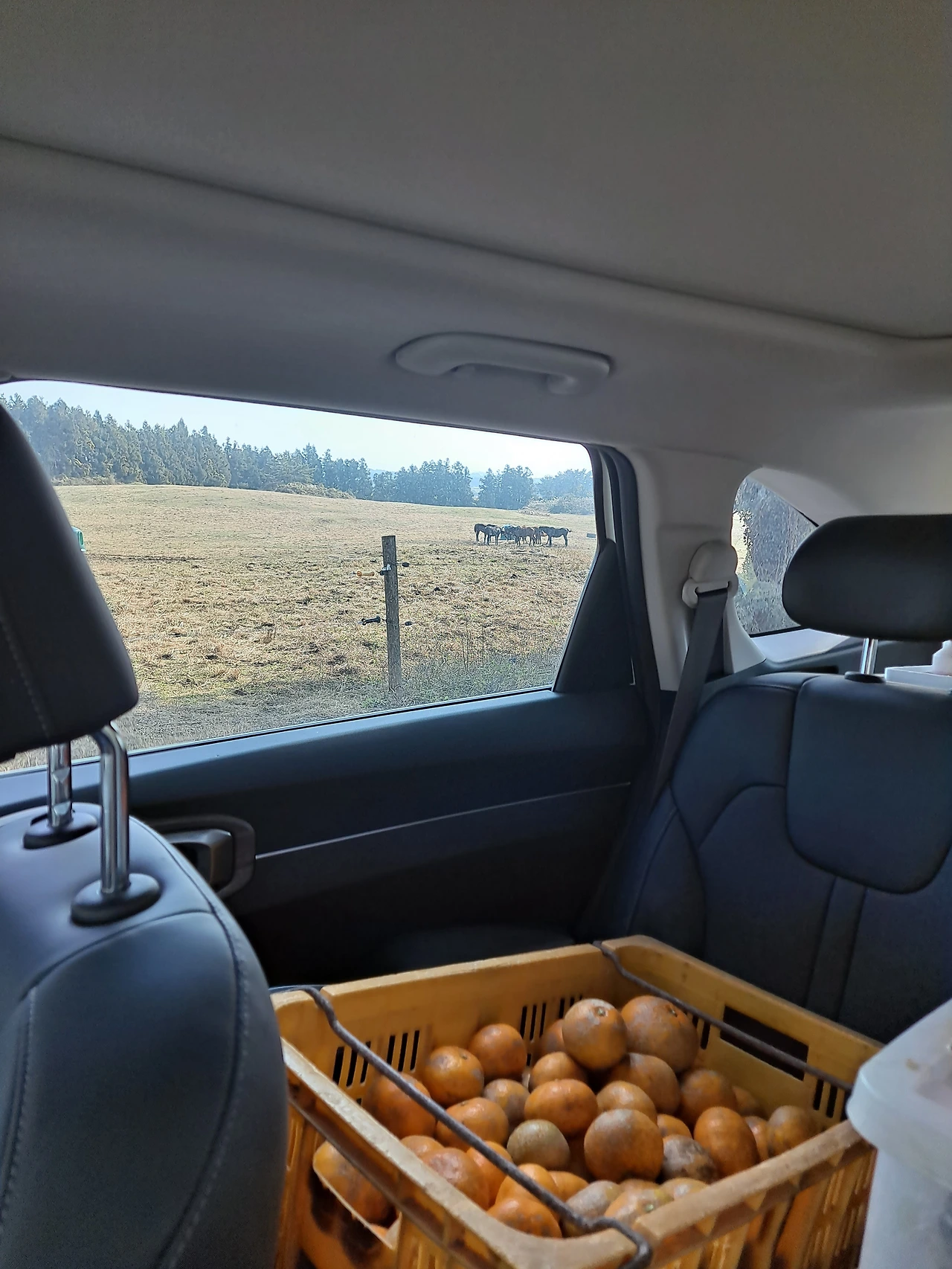 그에 비해서 가을에 백신사업을 할 때는 상대적으로 시간 여유가 있다. 오랜만에 목장도 한 바퀴 둘러보고, 목장 사장님하고 묵혀두었던 이야기도 나눌 수 있다. 새로운 말 식구가 늘어나 있기도 하고, 마사를 신축해서 멋진 건물이 들어서 있는 경우도 있다. 안타까울 때도 있다. 개업 초기 서투른 수의사의 실수를 애써 모른척해 주시던 어르신을 더 이상 뵙지 못할 때이다. 그 삼촌이 아닌 아들이 끌고 들어오는 말을 보면서 그만큼 내 눈가의 주름도 늘어있다는 걸 깨닫게 된다. 이런저런 생각을 하며 주위를 둘러보면, 말목장의 가을이 너무나 아름답게 익어가고 있었다. 내가 분명히 서귀포 감귤집 사위임을 몇 번 밝혔음에도 일이 끝나고 목장을 나설 때는 양손 가득히 귤 보따리가 들려 있을 때도 많다.