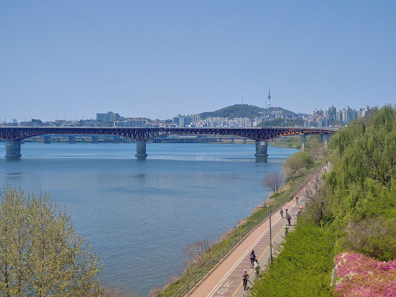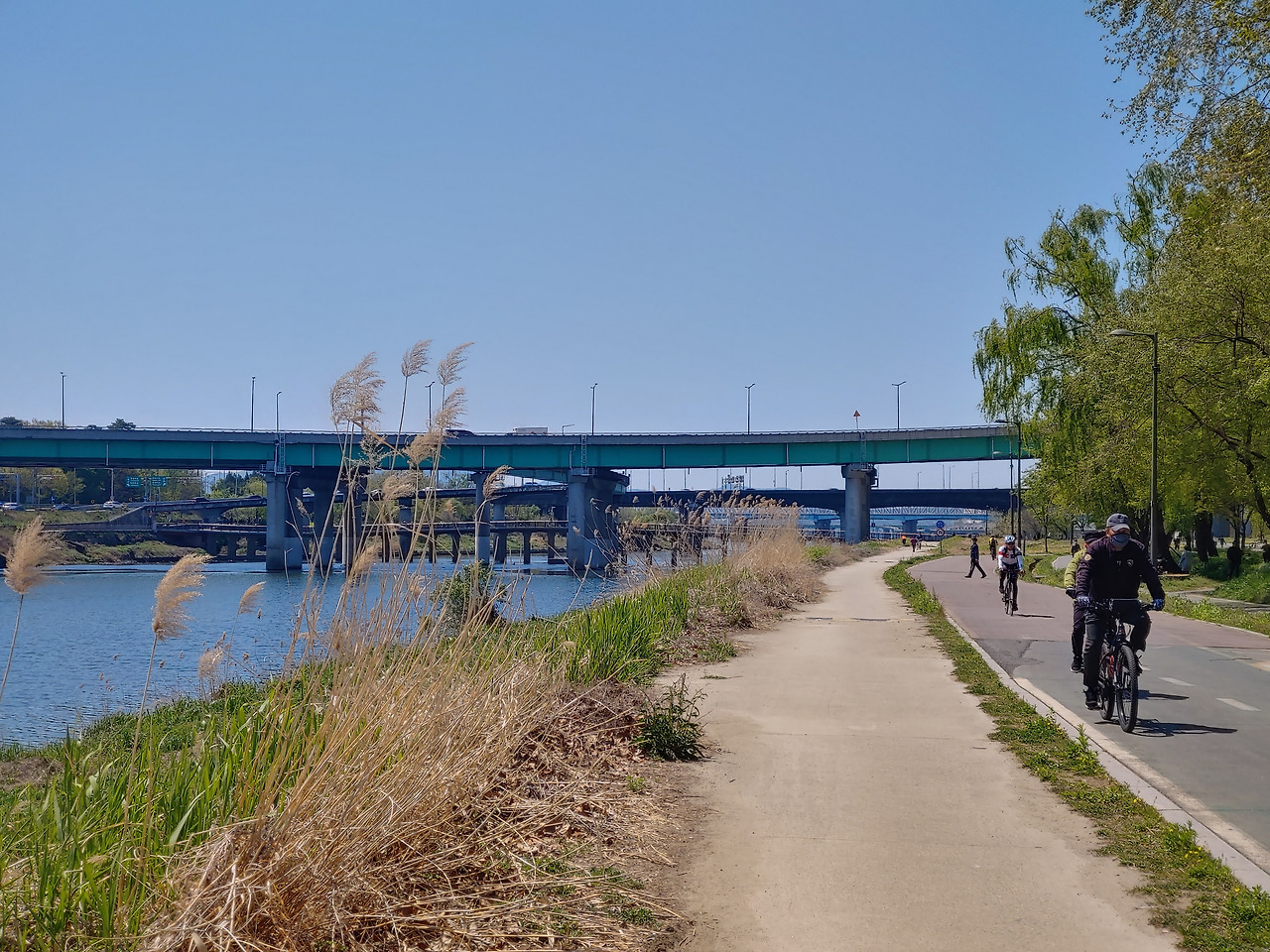 지난 일요일. 아들 어린이집 여자친구가 집에 놀러와 자리를 비켜주고 오랜만에 달리기를 했다. 이사오고 나서 처음 야외에서 달리기를 했다. 그간 아파트 커뮤니티센터에 있는 헬스장에서 운동을 했는데 코로나 여파로 지난 1월 중순부터 헬스장도 문을 닫으면서 집에서 조금씩 운동을 했다. 그러다보니 아무래도 답답한 부분이 있었다. 요즘 날씨도 좋고, 오랜만에 시간도 나서 이사오고 난 후 처음으로 운동화를 신고 밖으러 나갔다. 목적지를 정해두고 뛰기 시작한 건 아니었다. 집 근처 신답역에서 출발해서 물길을 따라 한양대, 서울숲을 지나 계속해서 뛰다 보니 뚝섬역까지 갔다 왔다. 중간중간 나이키 런 앱을 끄고 사진을 찍고 걷기도 하느라 정확하진 않지만 왕복 15km 정도 되는 거리다. 날씨 영향도 있겠지만 이날따라 유난히 한강이 예뻤다.
