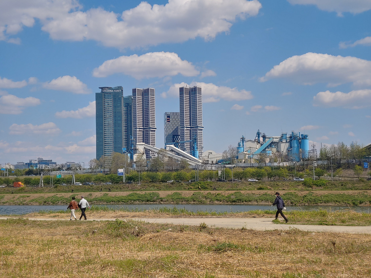 아래는 달리는 중간중간 찍은 사진들. 날씨가 너무 좋은 날 운동을 하면 생기는 문제.. 사진 속 몇 가지 풍경은 앞으로 몇 년 후에는 보지 못할 풍경이다. 대표적인 게 성수동 삼표레미콘 공장. 1977년부터 있었다고 하는데 2022년 6월까지 이전하고 공원으로 바뀐다고 한다. 도시 한복판에 레미콘공장이 있는 건 이동 거리가 너무 멀면 레미콘이 딱딱하게 굳어버리기 때문이라고 들었던 거 같은데 뉴스를 보니 아직 이전할 땅을 못 찾고 갈등이 있는 것 같다.