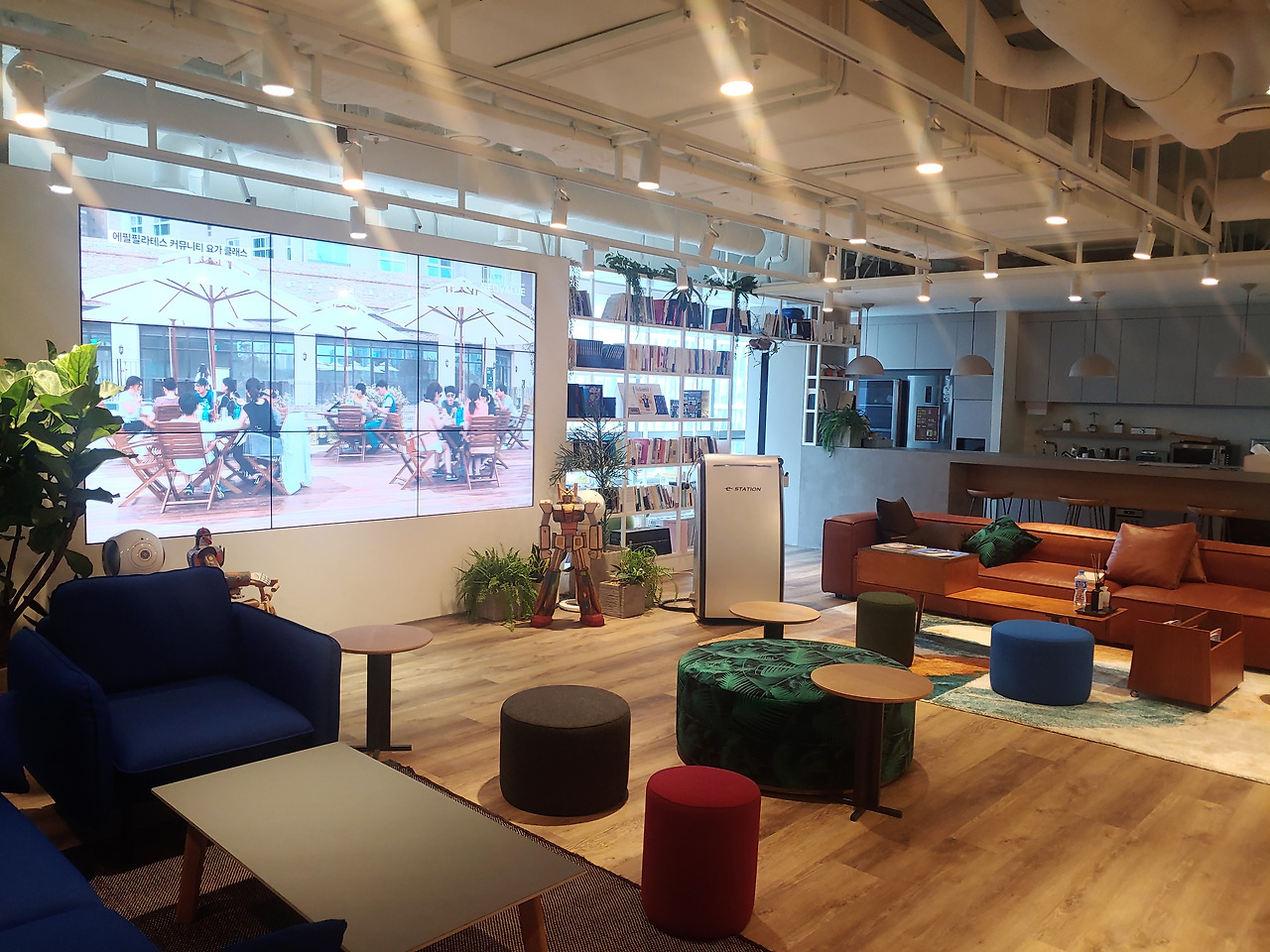 이사했다는 얘기는 들었는데 최근 처음 가봤다. 인테리어를 위한 인테리어가 아닌 식물과 작품으로 공간을 꾸몄다고. 직원들이 아이디어를 냈다고 한다. 테헤란로는 가기 싫고 한층 면적이 300평 이상인 건물을 강남에서 찾다보니 여기로 오게 됐다고. 최근 가본 오피스 중 가장 인상적이다. 다만 성수동에 사옥 완공되면 옮길 예정이라고