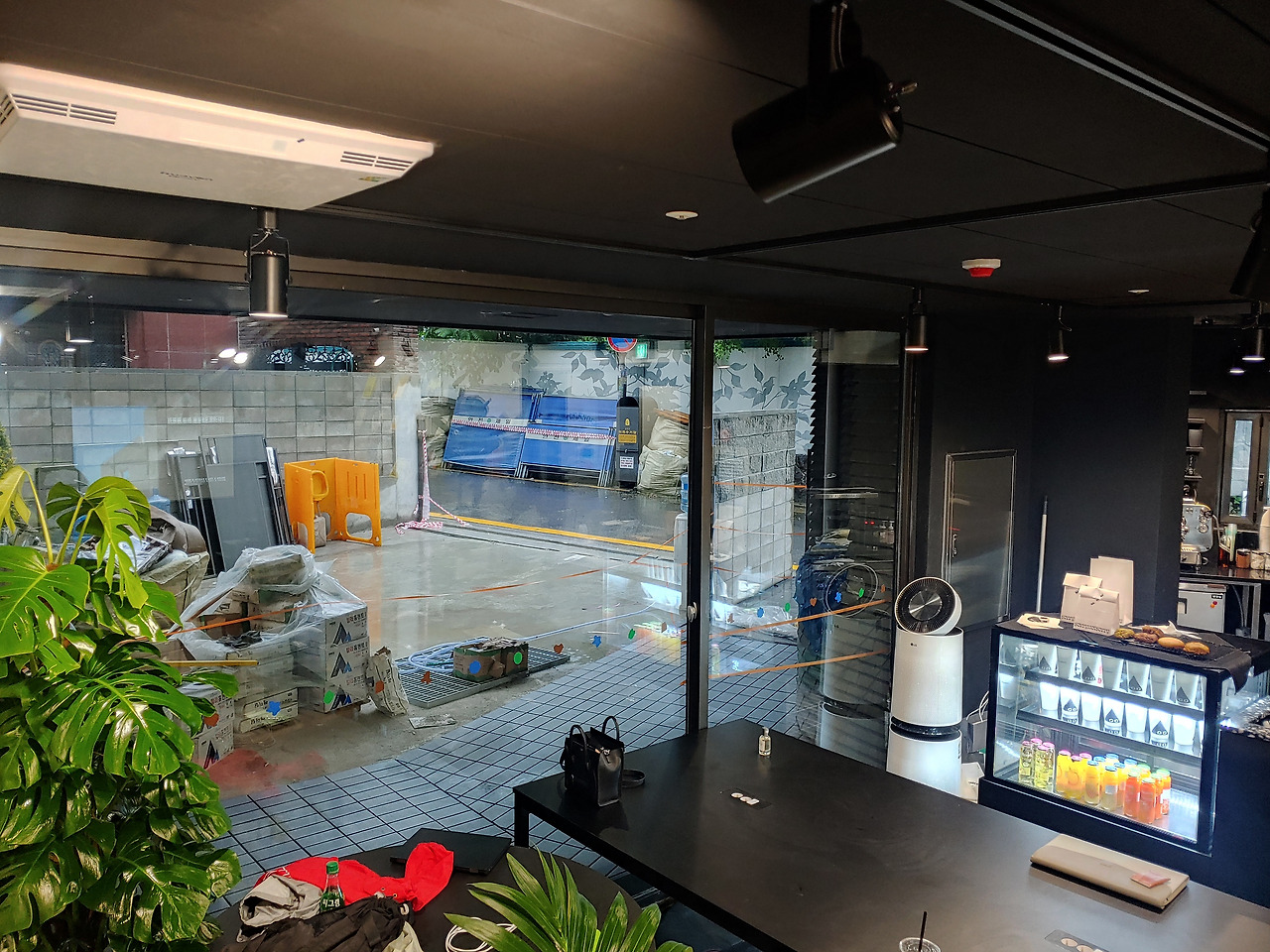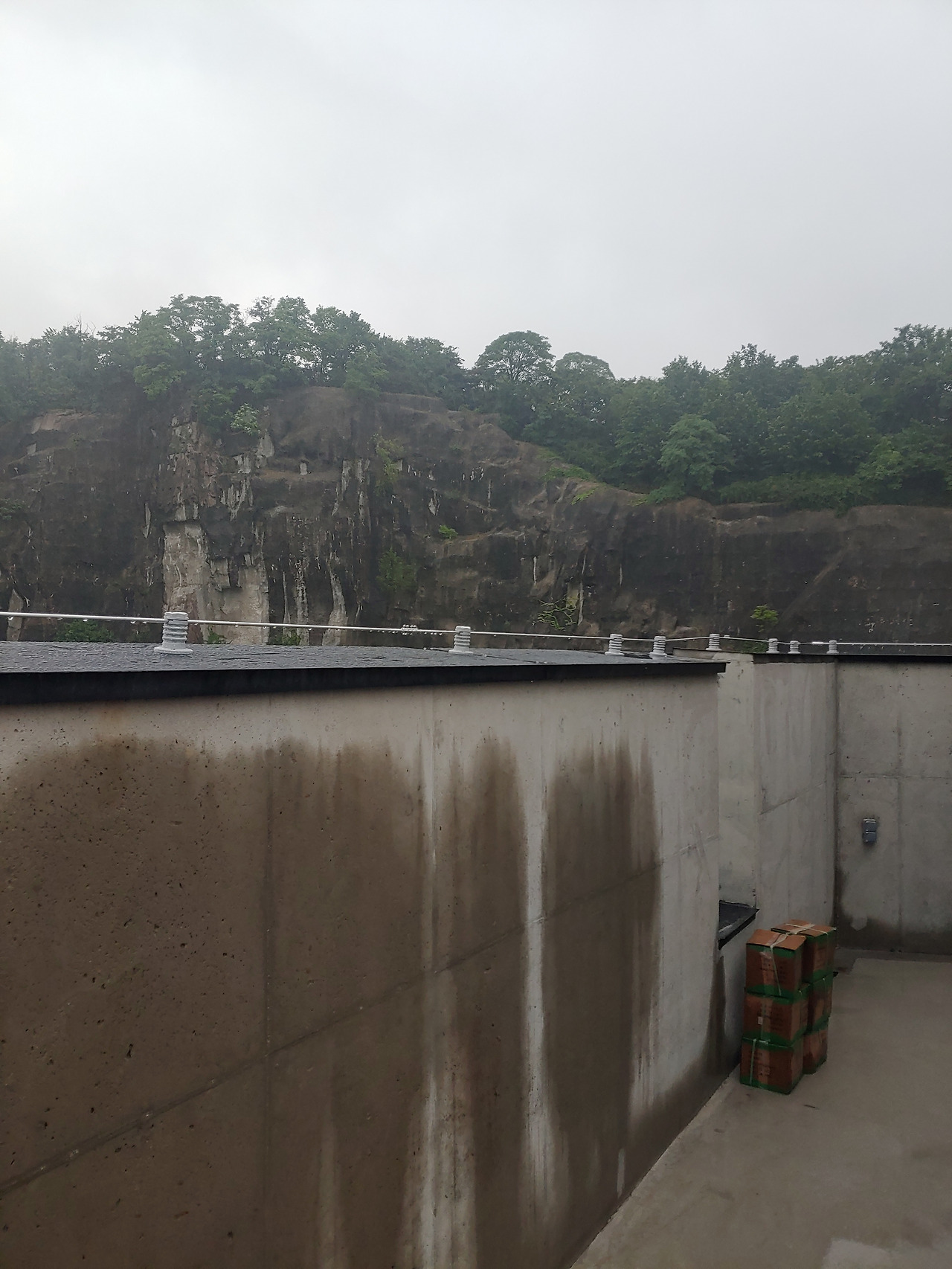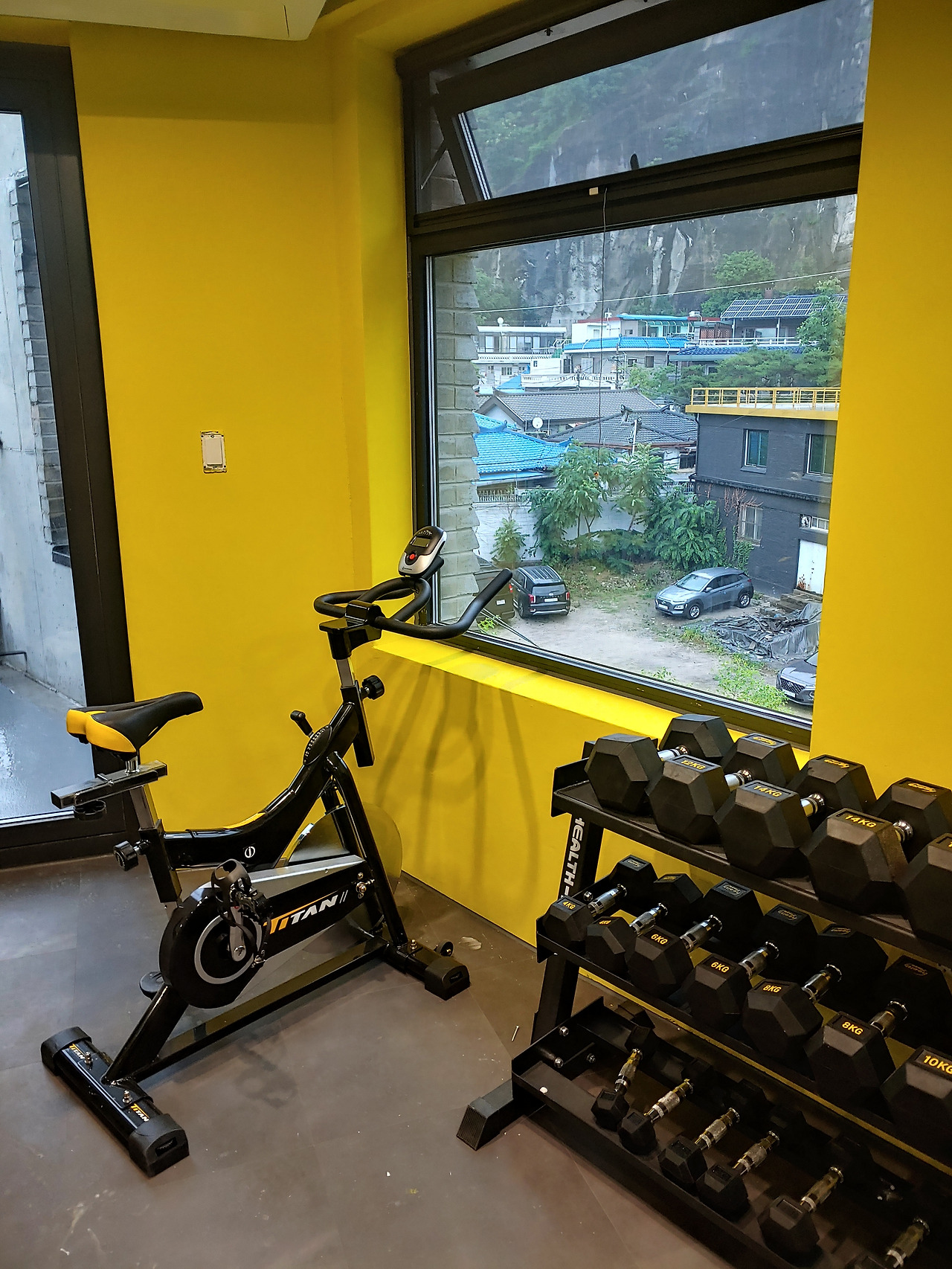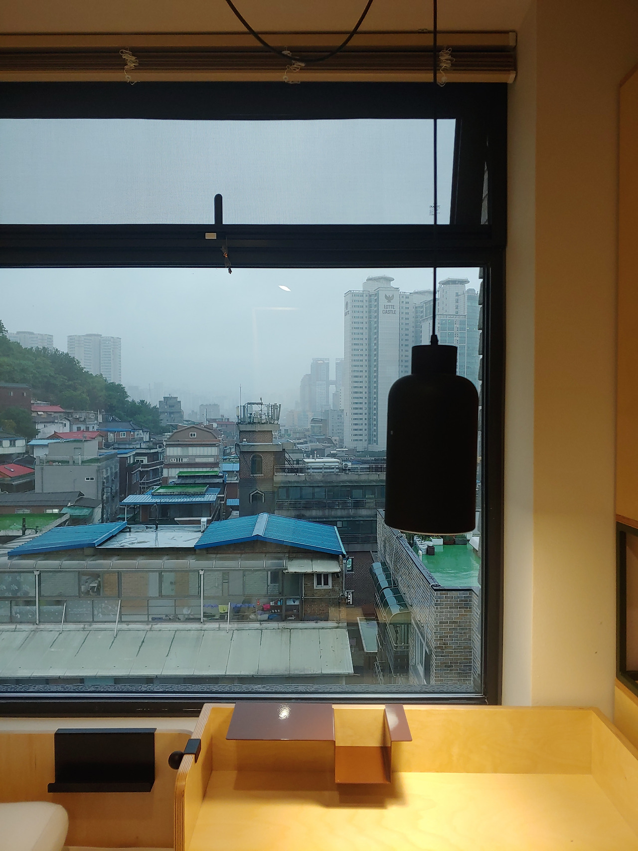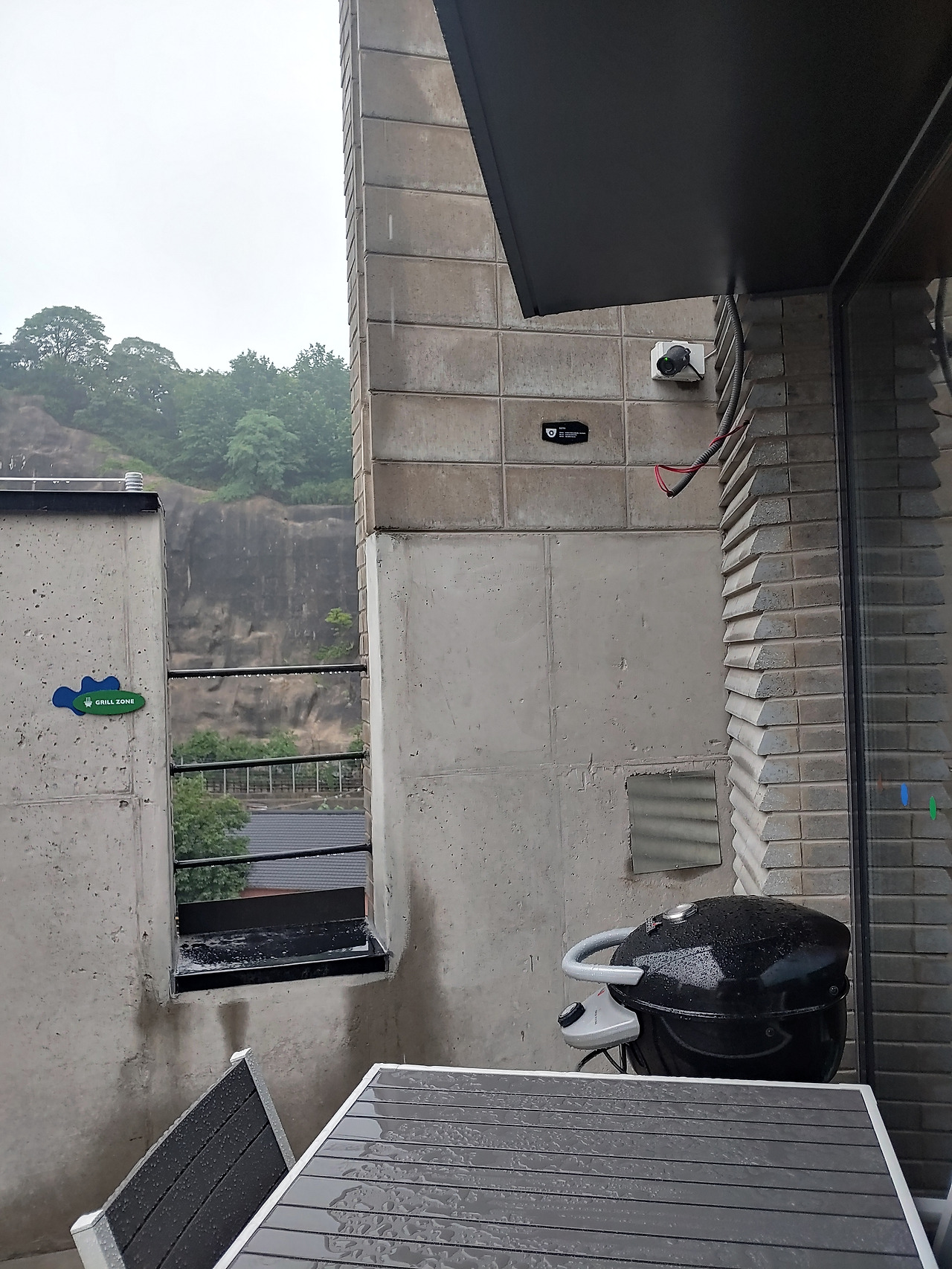 #4. 부담 없는 공용공간.가끔 임대주택을 방문했을 때 드는 생각 중에 하나는 과한 부분이 있다는 점이다. 특히 공용공간에 잔뜩 힘을 준 경우가 많은데 맹그로브의 공용공간에서는 그럼 부담은 확실히 덜했다. 도착해서 우선 옥상 테라스부터 먼저 보고 내려왔는데 뷰도 좋고, 비오는 날이라 그런지 운치가 있었다. 옥상 테라스에는 그릴을 즐길 수 있는 공간도 있었다. 그리고 예약제로 사용할 수 있는 헬스장, 업무 공간 및 카페로 사용할 수 있는 일층 공간, 지하에 마련된 부엌과 빨래실 등 실용적이면서도 과하지 않다는 생각이 들었다.