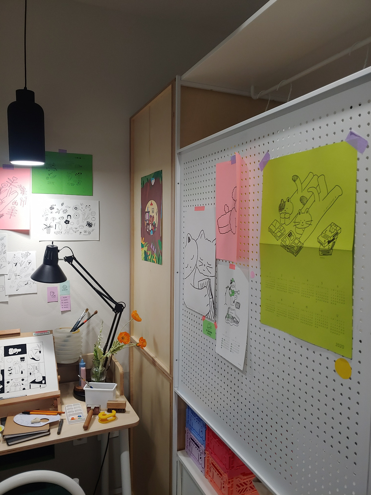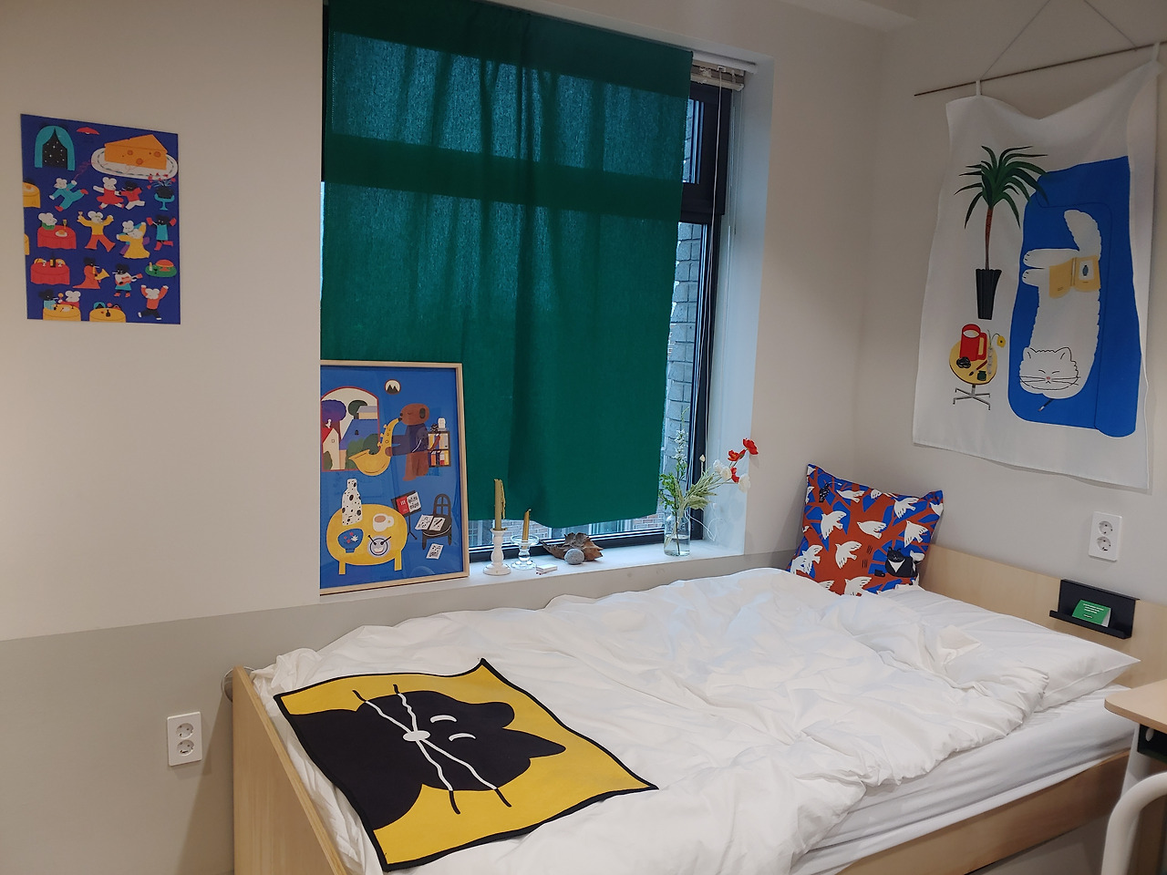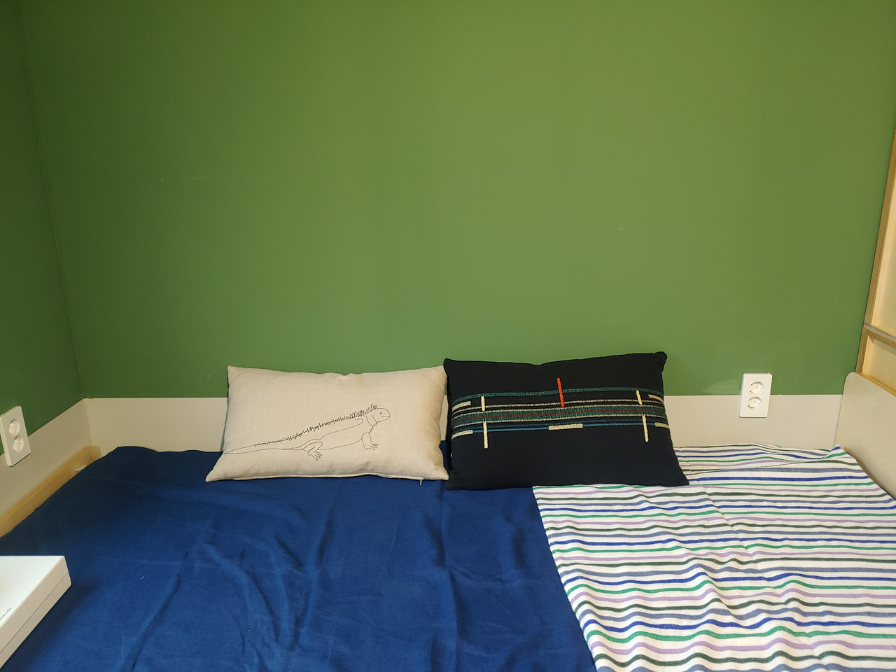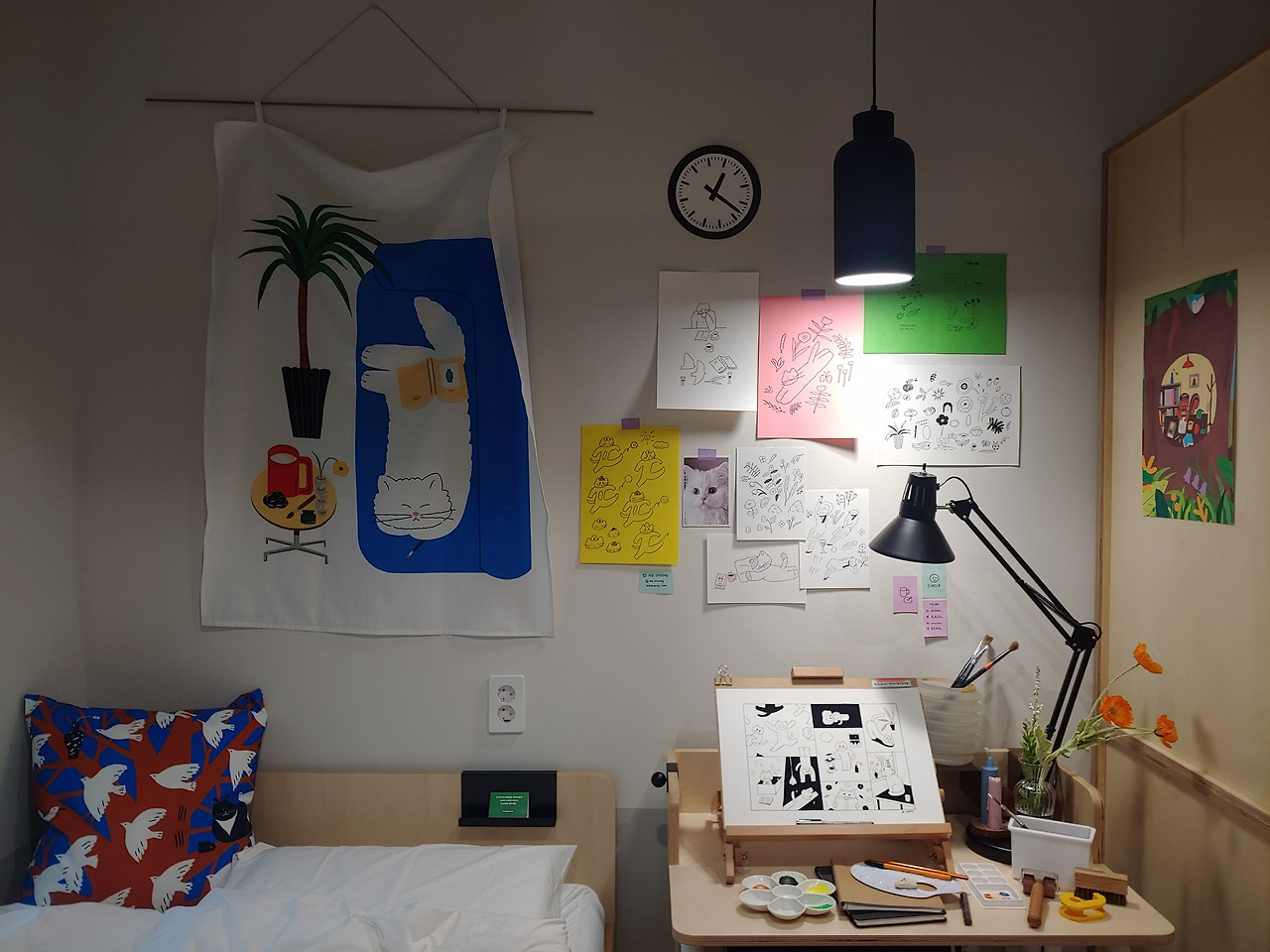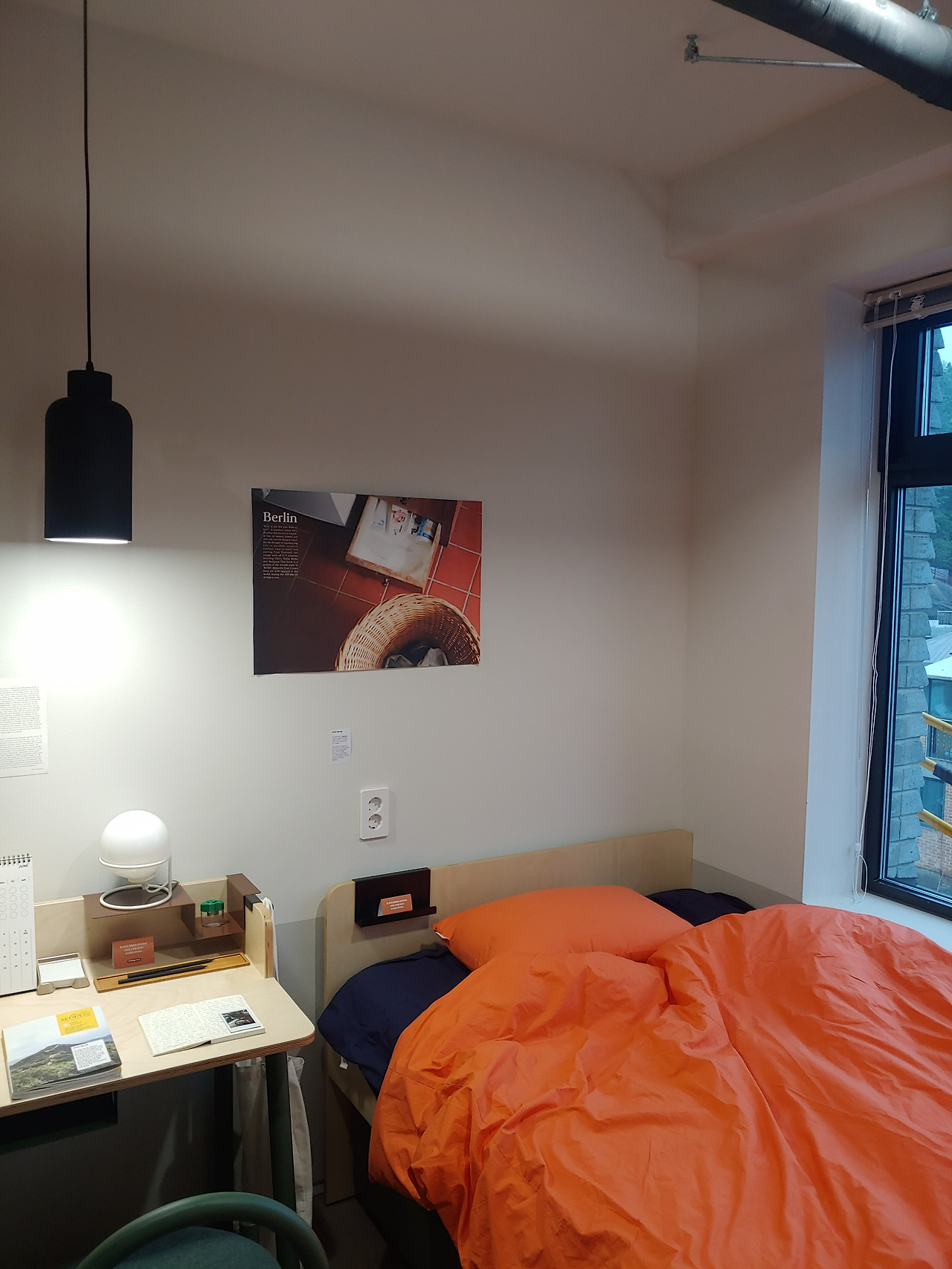 #3. 협주와 변주. 방에 들어가자마자 가구가 눈에 들어왔다. 자체 제작한 가구라고 한다. '비아인키노'와 협업을 통해. 비아인키노는 팟캐스트에도 한번 나와 얘기를 나눈 적이 있는데 가격이 싸지는 않다. 비아인키노에서 맹그로브가 추구하는 방향성(청년들에게 합리적인 가격에 살고 싶은 공간을 제공하는)에 공감해 함께 작업을 했다고 한다. 다른 임대주택에서 보지 못했던 아이디어도 있었다. 2인 1실이라고 해야할까. 각자 독립적인 공간(침실+책상 등)이 있고, 화장실과 샤워실을 공용으로 쓰는 방이다. 두 방과 공용 공간은 연결되어 있고, 각각 개별 테라스도 있다. 연인이나 친한 친구들이 이 공간을 같이 쓰면 좋을 것 같다.