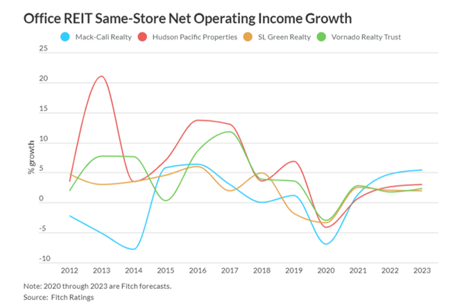 이런 가운데 3대 신용평가기관 중 한 곳인 피치가 리모트 워크의 증가로 인해 오피스 리츠의 현금 흐름이 부정적인 영향을 받을 것이라는 전망을 내놨다. 피치는 코로나19 이후 SL그린이나 보네이도와 같은 미국을 대표하는 오피스 리츠의 신용등급을 잇따라 낮추기도 했다. 이 같은 피치의 전망이 맞을지는 아직 좀 더 지켜봐야 할 것 같다.