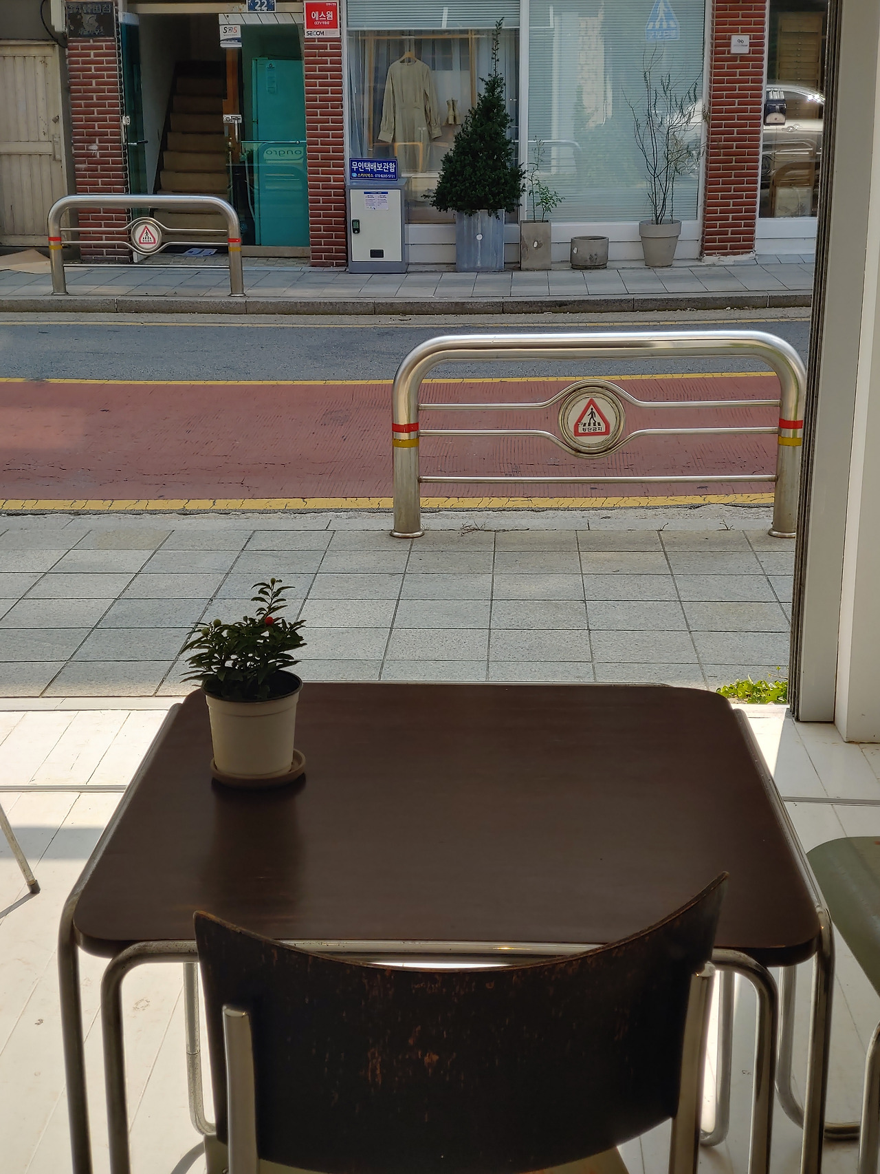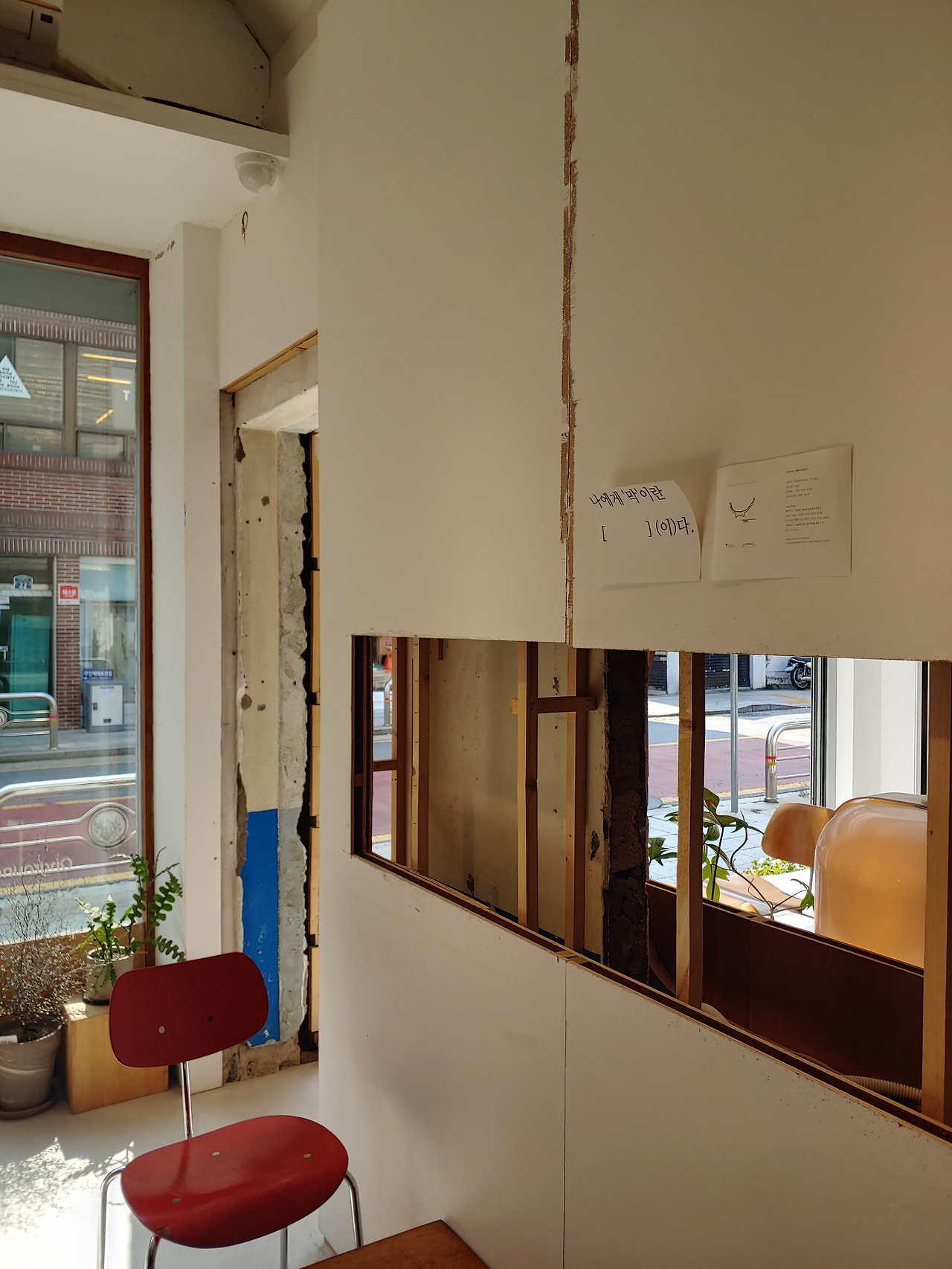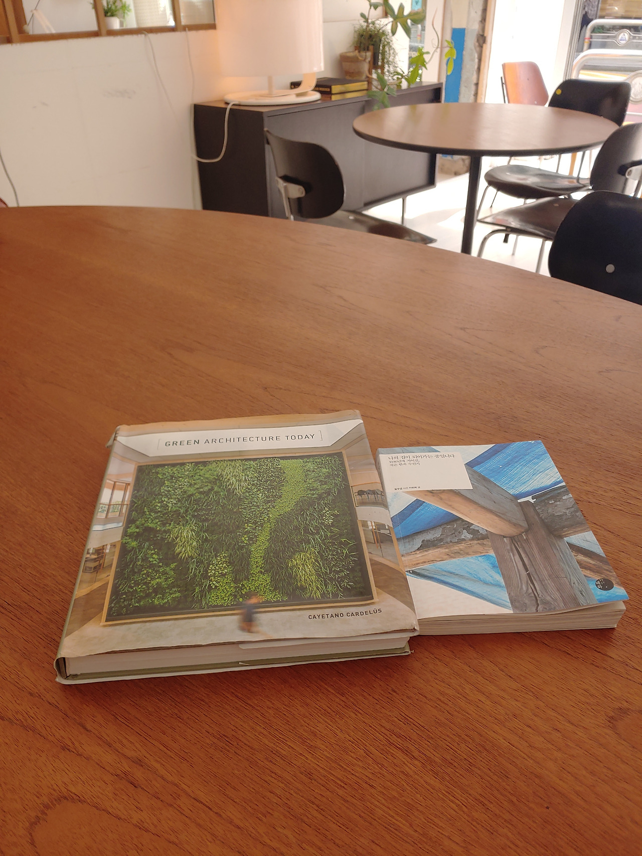 건축가가 만든 카페답게 카페 안에는 건축 책들이 가득하고, 카페가 리뉴얼하는 과정도 사진으로 전시해뒀다. 공간이 넓을뿐만 아니라 다양한 규모와 형태의 좌석이 마련되어 있어서 좋다. 개인적으로 건축에 흥미가 있어서 더 재미있게 느껴지는 공간이기도 하다. 커피와 빵(스콘)도 괜찮다. 인근에 자주 가는 다른 카페가 있지만 아내는 여기 커피가 더 맛있다고 한다.