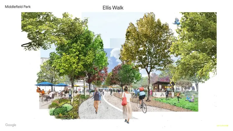 #구글의 새 오피스 개발 계획이 공개됐다. 구글 본사가 위치한 캘리포니아주 마운틴 뷰 시청은 지난 9월 중순 구글이 시에 신청한 새 오피스 건설 계획을 발표했다. '구글 미들 필드 파크'라는 이름이 붙여진 이 프로젝트는 산타클라라밸리 교통국 (VTA) 경전철의 미들 필드 역 인근 부지 면적 40에이커(16만 1,874제곱미터)에 조성된다. 구글 본사에서 약 5킬로미터 정도 떨어진 곳에 추가로 오피스를 짓는 것이다. 오피스 빌딩 4개동과 주거용 빌딩 6개동, 상업시설, 스포츠 경기장, 주차장 등이 들어설 예정이다. 특히 최대 1,850가구의 주택이 공급될 예정이다. 약 3,500명 정도 거주할 수 있는 규모다. 참고로 구글의 이번 프로젝트는 호주 부동산 개발업체 '렌드리스'와 함께 추진된다고 한다.