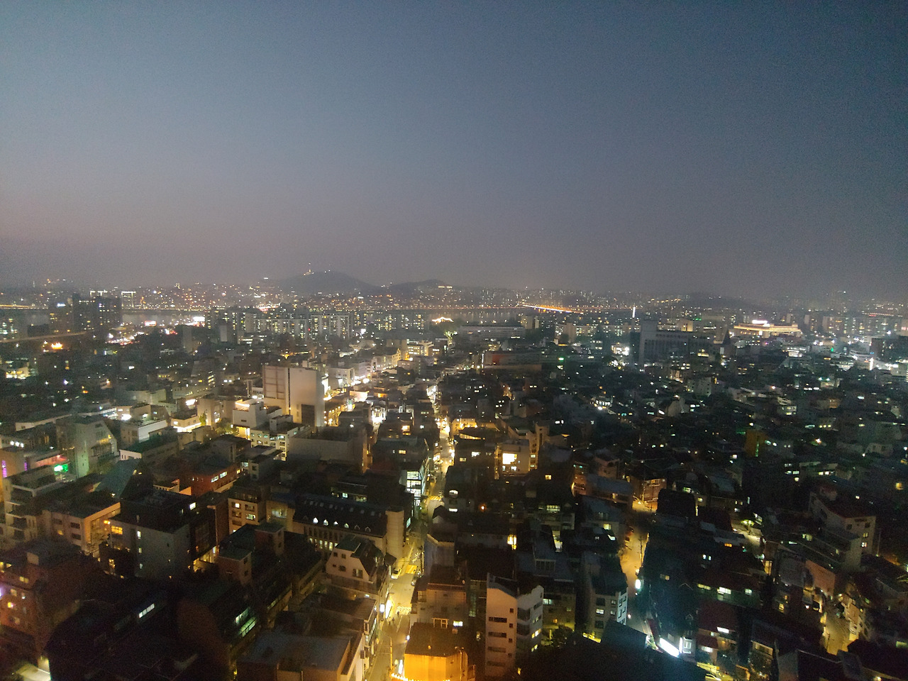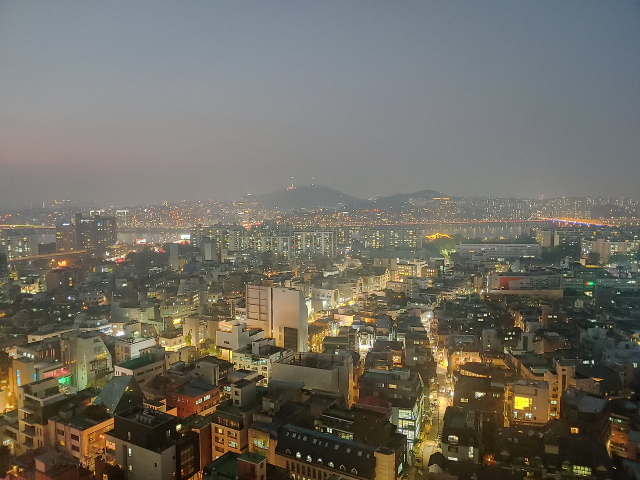 UDS는 10여개 정도의 호텔 브랜드를 운영하고 있는데 안테룸은 기숙사를 호텔로 바꾼 교토와 오키나와에 이어 3번째다. 아래는 신사 안테룸의 명소 19층에서 바라본 서울의 모습. 낮에는 카페, 밤에는 바로 운영된다. 조 대표님의 소개로 1층 식당과 지하 갤러리, 19층 카페&바, 20층 옥상 테라스, 타입별 객실을 둘러봤는데 놀라움과 아쉬움을 동시에 느꼈다.