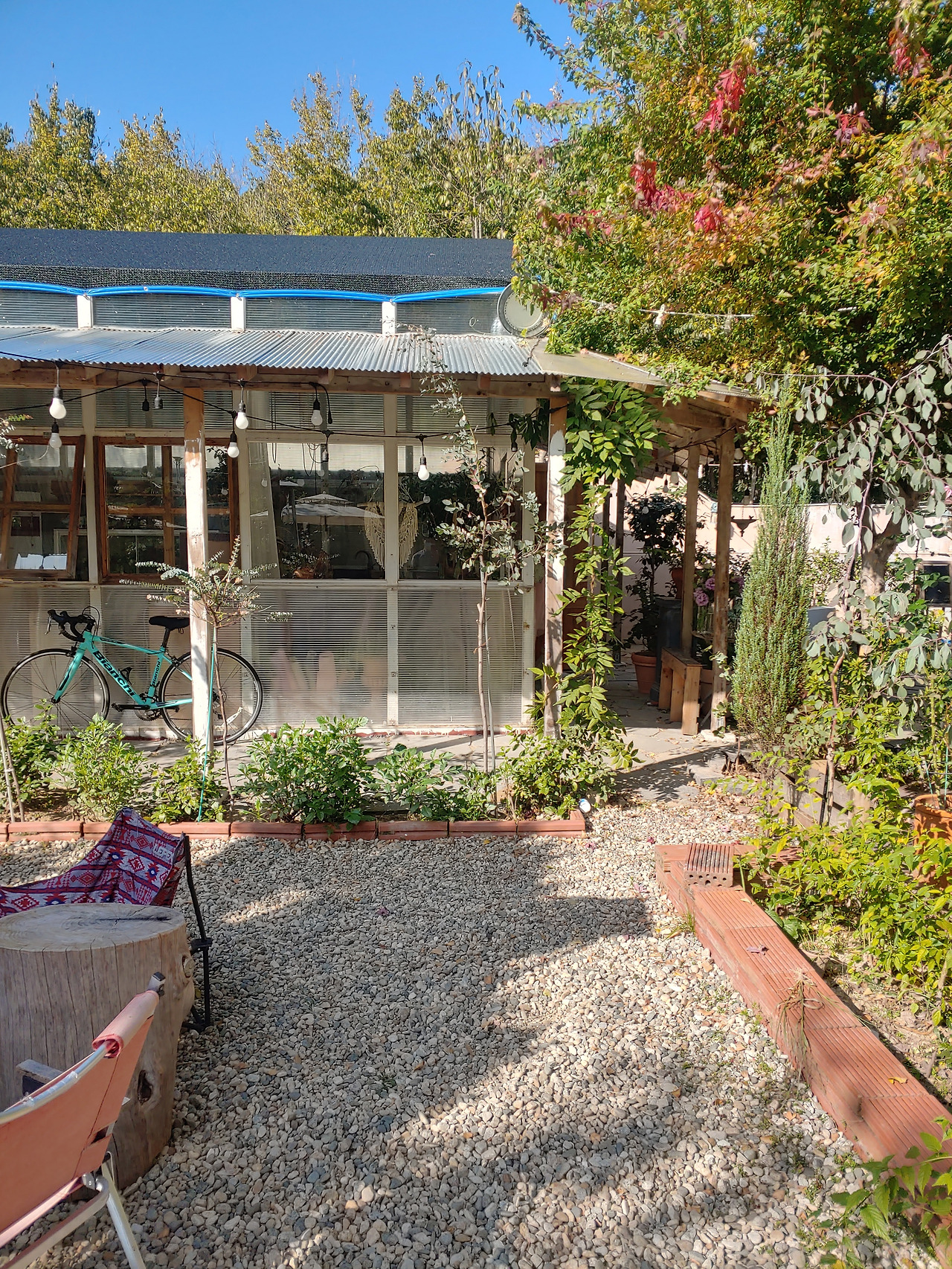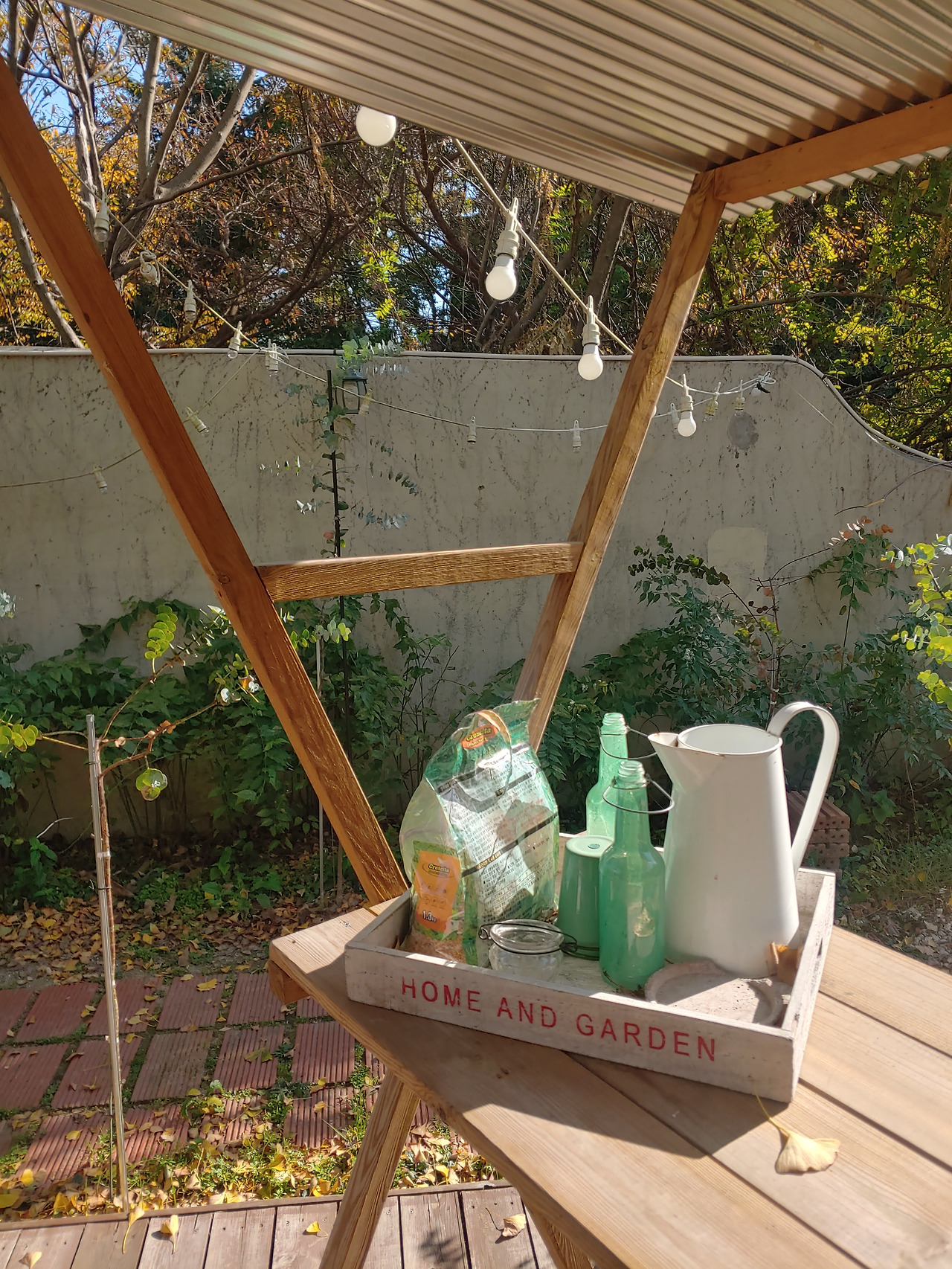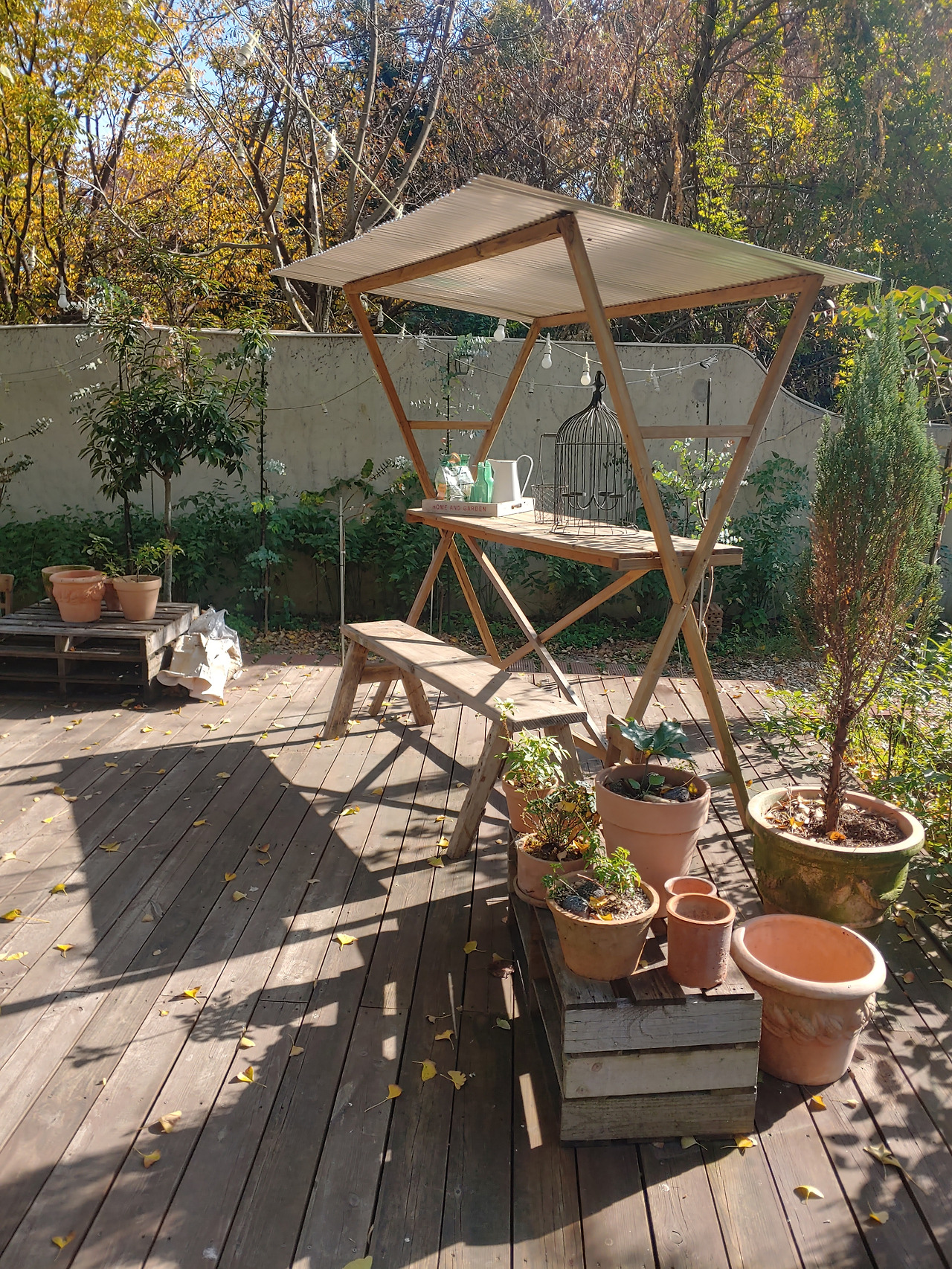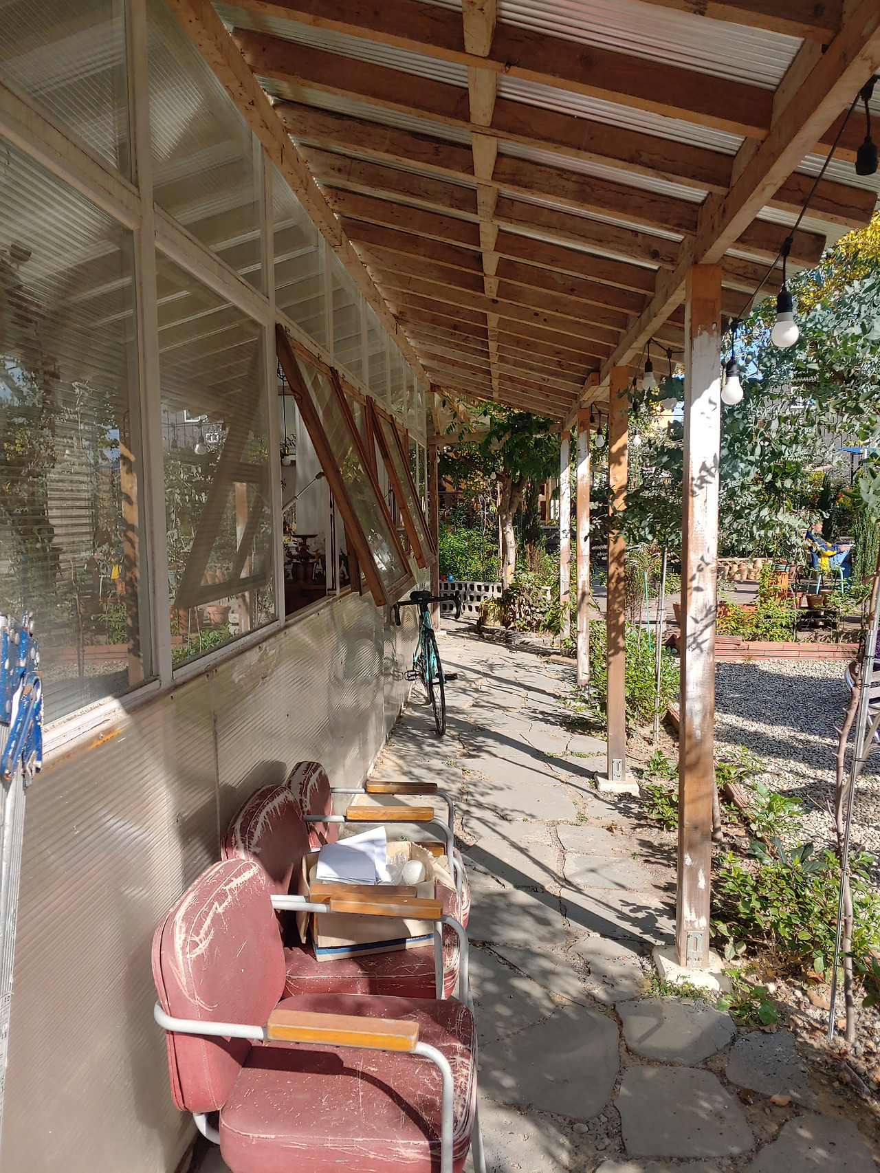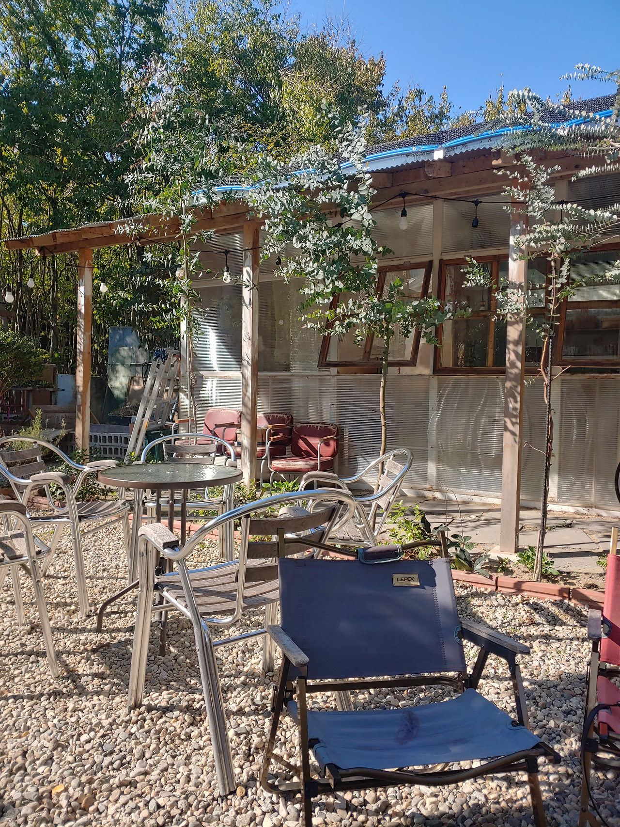 윔블던에서 주인공인 남자 테니스 선수 부모님 댁에 아버지가 오두막을 짓고 사는 정원이 나오는데 영화 속 그 장면이 떠올랐던 진주의 카페