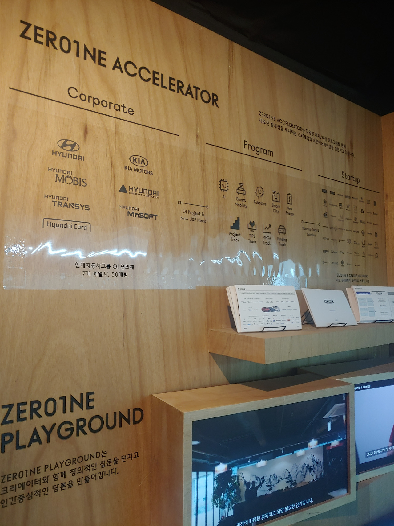 묘하게도 점심은 또 현대차에 다니는 분이랑 잡혀 있었다. 팟캐스트를 통해 맺은 인연이다. 팟캐스트를 듣던 분이 페이스북 친구 신청을 해주셨고, 지난해 지금 동네로 이사를 오면서 동네 주민이 되어 동네에서 종종 뵙고 이야기를 나누는 분이다. 현대차 '제로원' 프로젝트를 맡고 계신 분인데 강남 한화드림플러스에 마련된 제로원 행사가 있다고 해서 초청을 해주셨다. 자신이 일하는 공간을 보여주고 싶으시다고 해서. 여러 사진을 찍었지만 개인적으로 눈길이 갔던 장면 위주로 올려본다. 짧은 만남이었지만 같이 할 수 있는 무엇인가를 남기고 왔다는 생각이 든다.