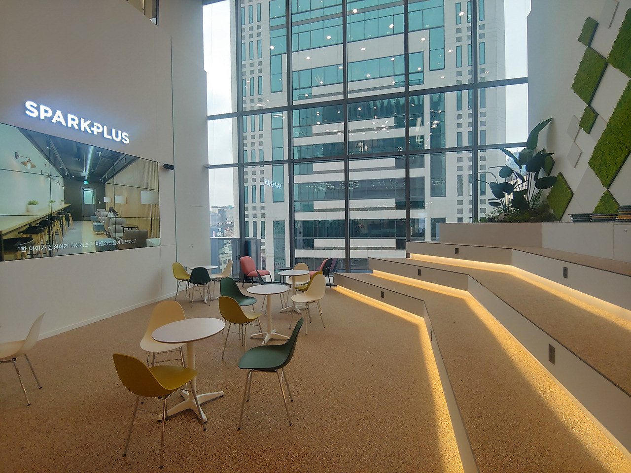애프터 코로나 시대를 맞이하여 여러가지 테스트를 진행하고 있는 공간. 지금까지 본 스파크플러스와는 또 다른 느낌
