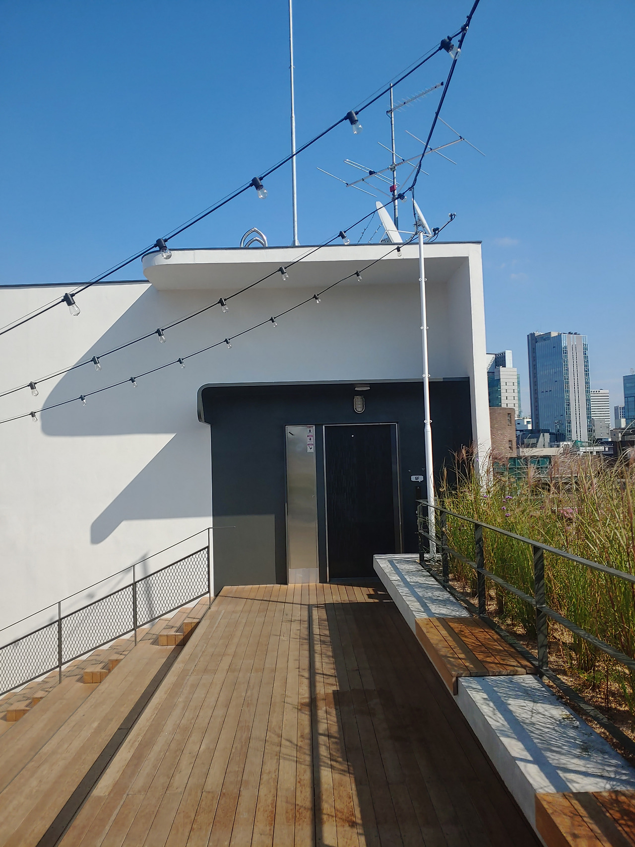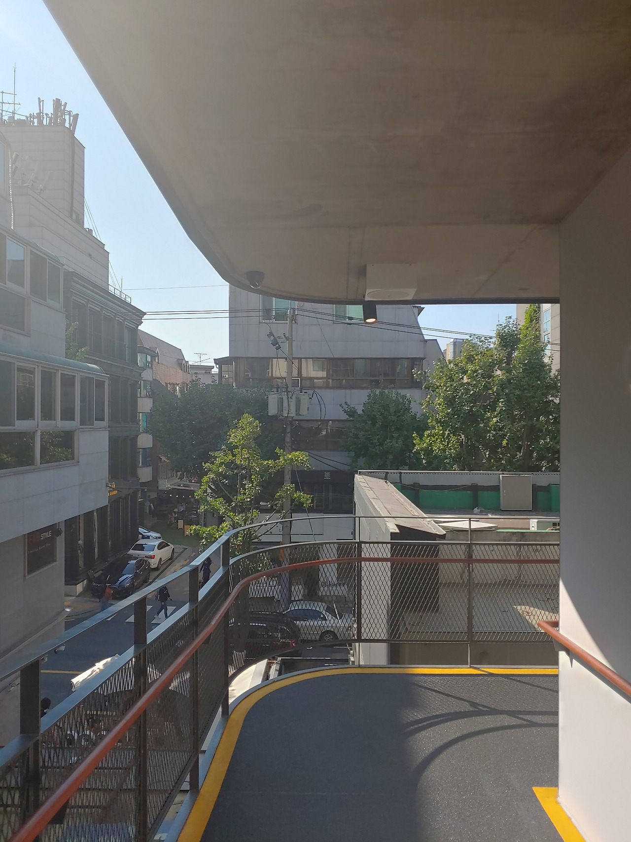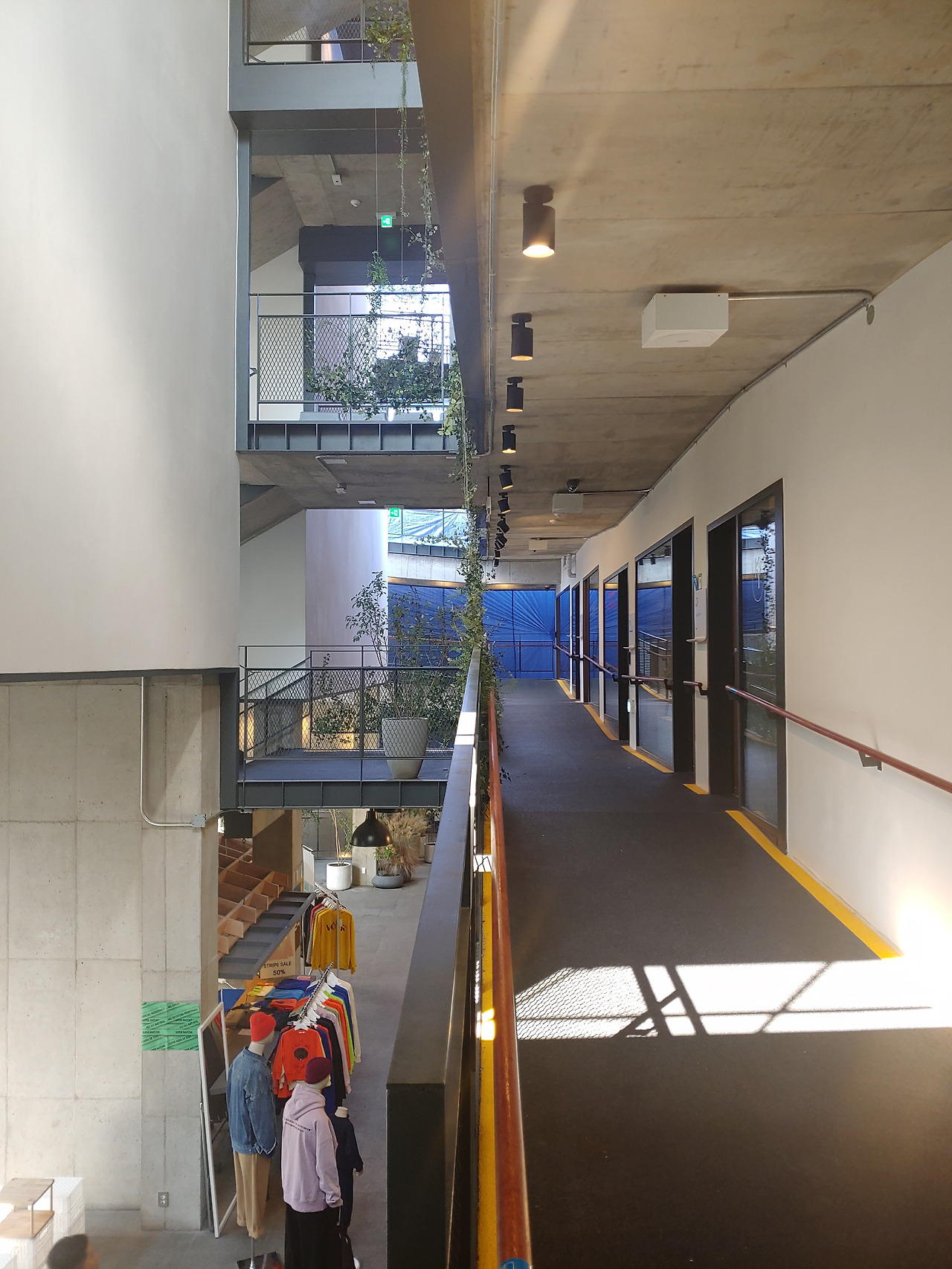 그리고 김찬중 더시스템랩의 김찬중 건축가와 VERY&MUCH의 한기룡 대표. 이 두 분은 곧 팟캐스트에 모실 예정이기도 하다. 지난 9월 약속을 잡았는데 다들 워낙 바쁜 사람들이라 잠정적으로 11월로 연기됐다. 김찬중 건축가는 쌈지길을 설계한 최문규 건축가의 제자이기도 하다. 쌈지길과 마찬가지로 가로골목도 계단이 아닌 비스듬히 기울어진 길 '램프'를 통해 저층부와 상층부를 연결한다. 그런 측면에서 본다면 가로골목에는 김찬중 건축가뿐만 아니라 그의 스승인 최문규 건축가의 생각도 담겨 있다고 볼 수 있다. (한 가지 눈에 띄는 부분은 쌈지길은 1층에서 2층으로 올라갈 때는 계단을 거쳐야 한다. 몇 달 전에 애기와 함께 유모차를 끌고 간 적이 있는데 위로 올라가려다가 포기한 적이 있다. 반면 가로골목의 경우 일층과 이층을 연결해주는 엘리베이터가 있었다.) 그리고 나는 가로골목을 보면서 안도 다다오가 설계한 오모테산도 힐즈도 떠올랐다. 이날 한기룡 대표님은 직접 현장에서 만나 몇 마디 이야기를 나누기도 했는데 곧 팟캐스트에서 만나 더 자세한 이야기를 나누려고 한다.
