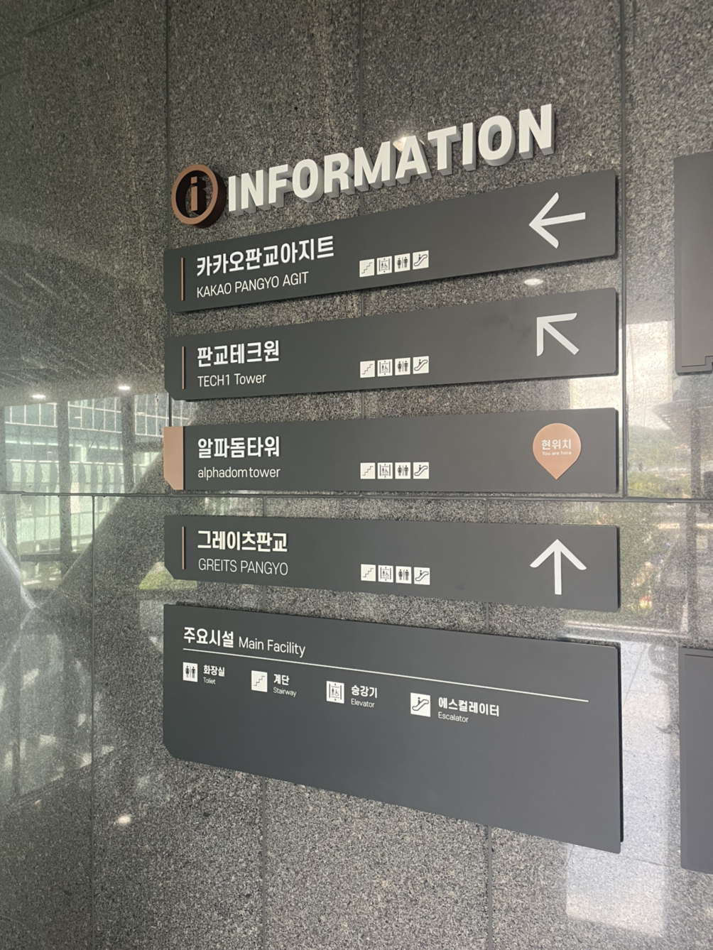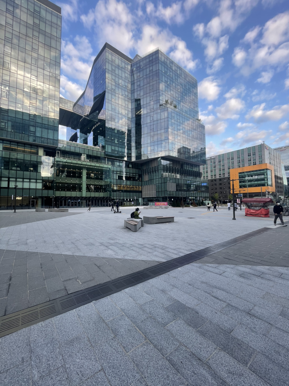 판교 알파돔시티 6-1구역(카카오판교아지트)와 6-2구역(판교테크원)은 작년 11월에 준공됐는데 준공 이후로는 처음이다. 작년에 일본 대사관에 파견 나온 국토교통성 직원이 판교 관련 기사를 보고 연락을 해와서 만난 적이 있는데 그때 그 친구에게 판교를 보여주려고 함께 온 이후 처음 방문했다. 그때는 한창 공사 중이었는데 완공된 모습을 판교의 달라진 위상이 새삼 실감난다.