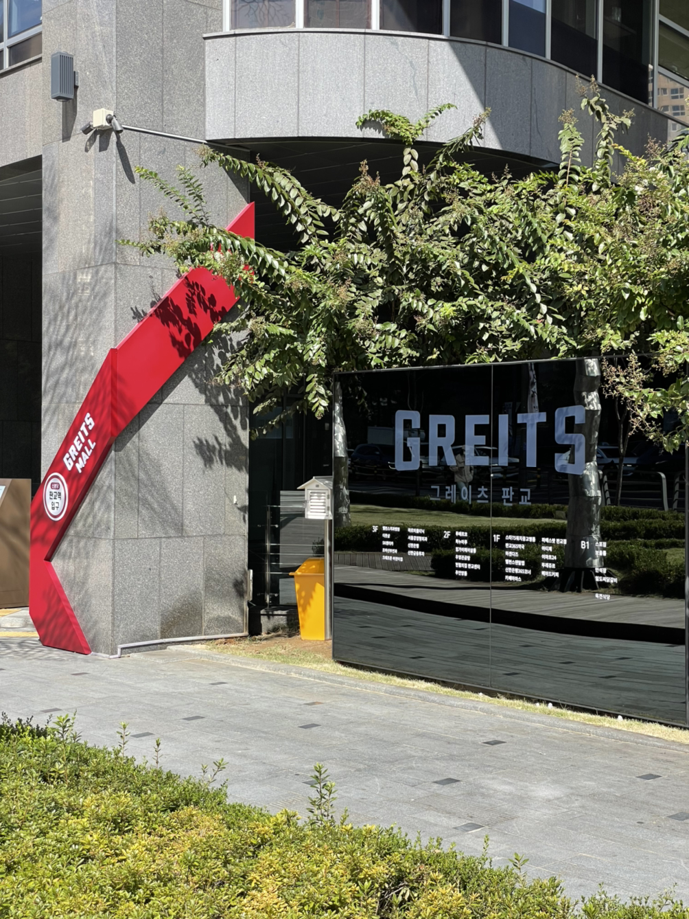 판교에 온 목적. 신한알파리츠의 오피스 브랜드 선포식. GREITS. 옛 6-3구역 곳곳에 '그레이츠 판교'라는 새 이름이 걸려 있다. 2016년에 싱가포르 출장 당시 주요 건물 곳곳에 캐피탈랜드, 메이플트리 등 싱가포르를 대표하는 부동산 회사의 이름이 걸려 있는 것을 보고 깊은 인상을 받았다. 당시만 하더라도 한국에서는 그런 시도를 하는 곳들이 거의 없었는데 최근 들어 조금씩 변화가 나타나고 있다.