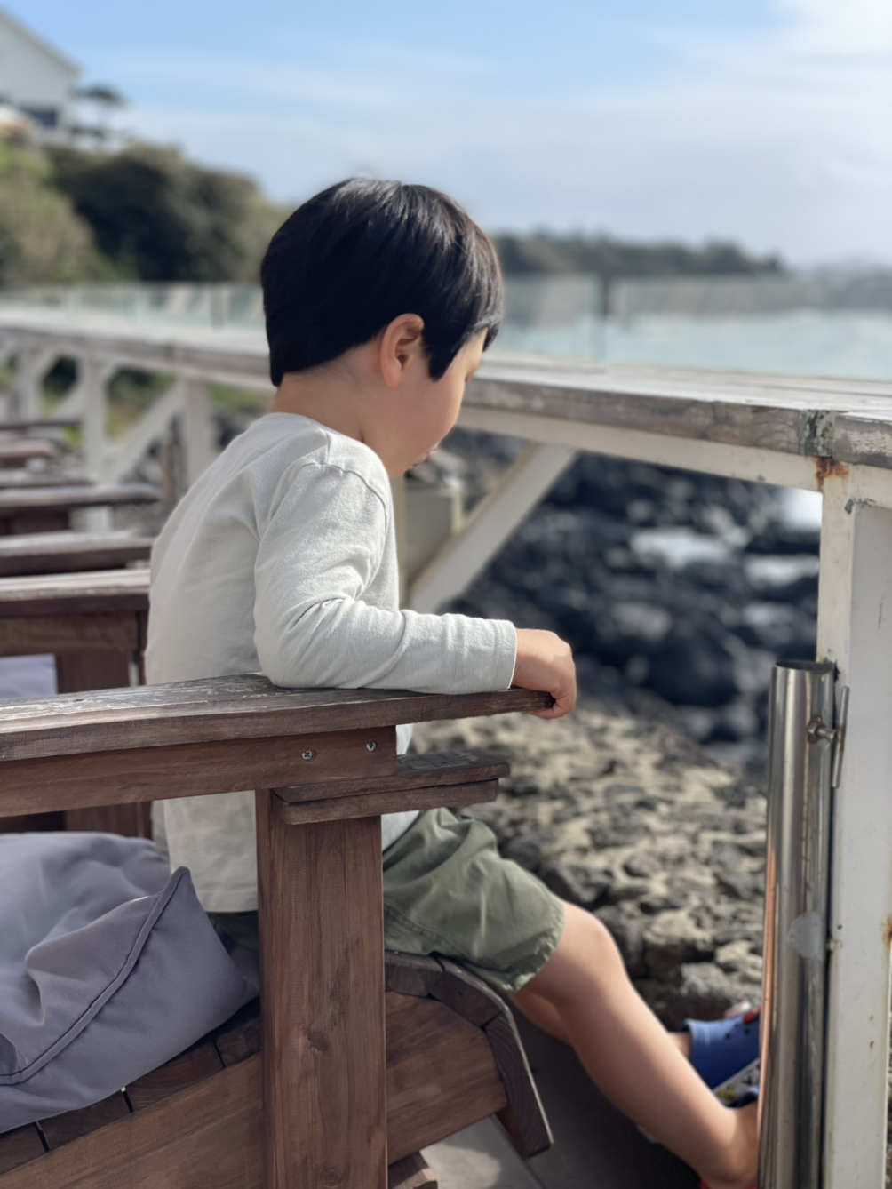 애월 바다를 바라보는 아들