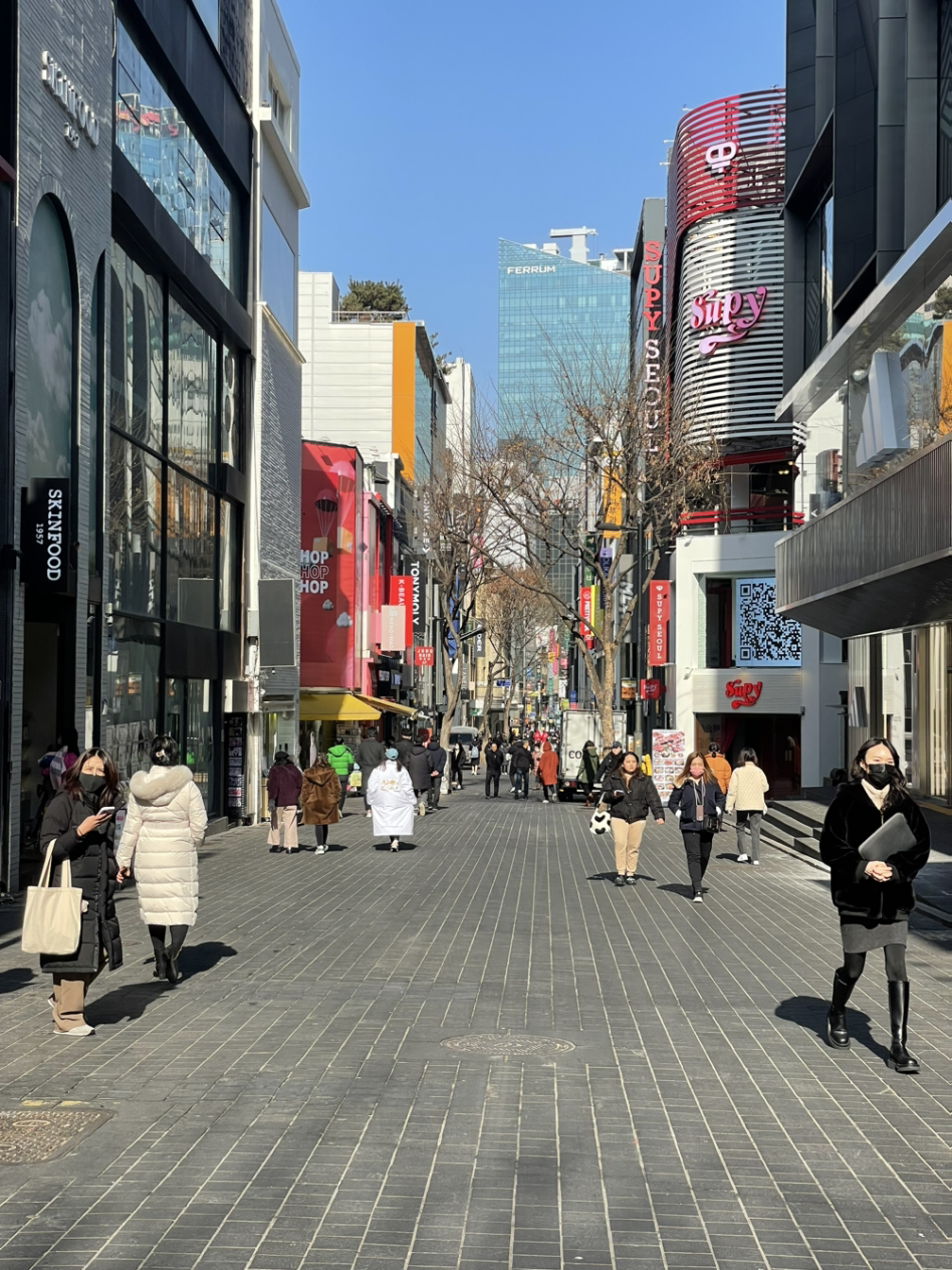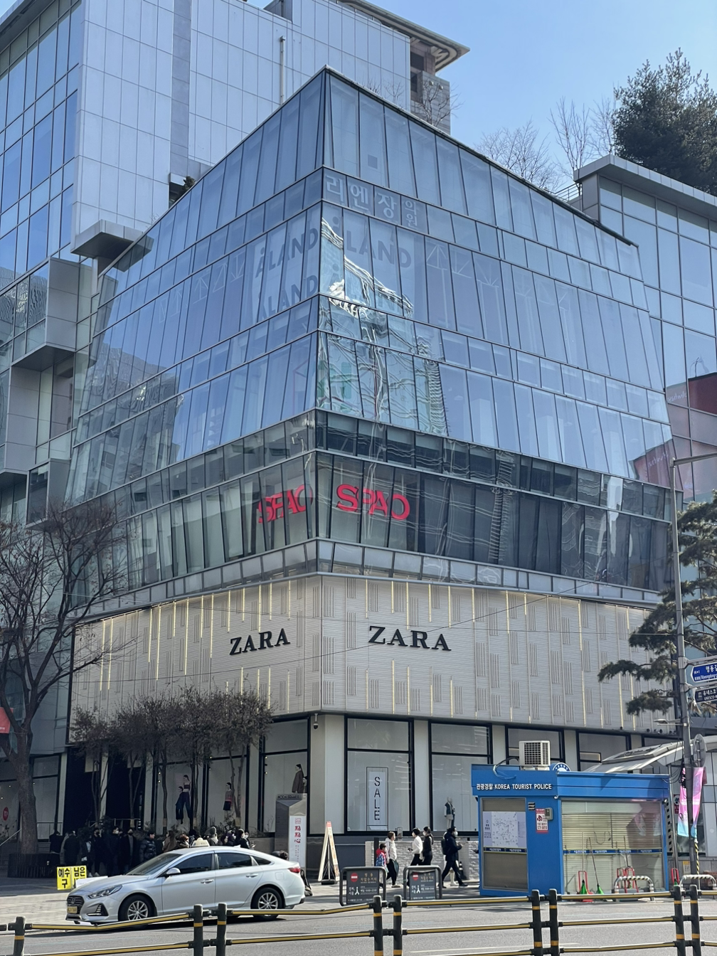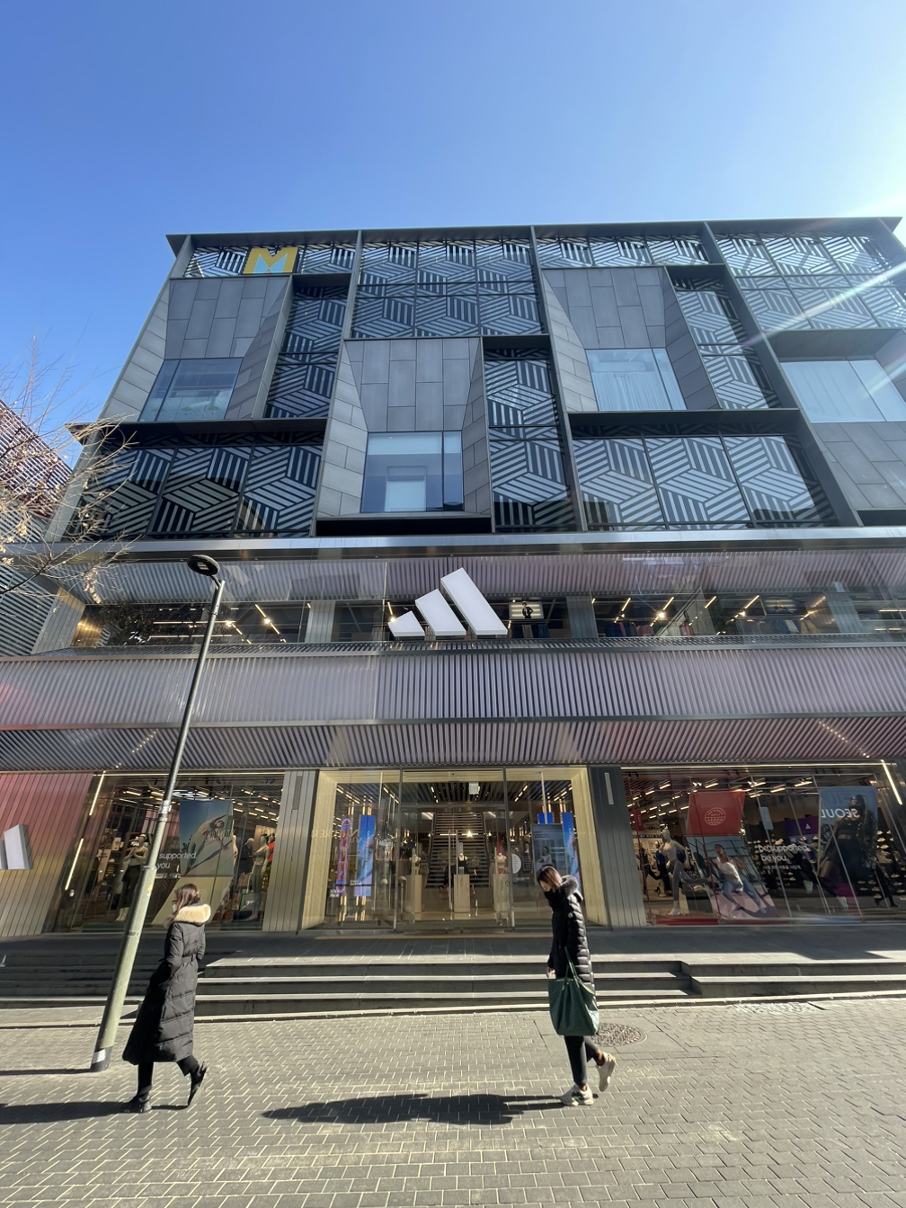 지난 3일 점심 약속이 갑자기 비어 잠시 명동에 다녀왔다. 명동이 다시 활기를 찾고 있는 게 느껴진다. 아직 한창 때와 비교하기는 힘들지만 사람들이 많이 늘었고, 새로운 모습으로 단장한 가게들도 눈에 띈다. 신발 가게가 정말 많이 늘었고, 나이키에 이어 아디다스 플래그십 스토어도 엠플라자(자라 창업자의 자산을 관리하는 운용사인 폰테가데아가 소유한 건물이다)에 문을 열었다. 로컬 소비자가 사랑하는 커피 브랜드 리사르는 사람들로 북적인다. 또 롯데백화점과 마주보고 있는 길 건너편에는 애플스토어가 들어선 건물(안젤로고든이 투자한 자산이며, 과거 KB국민은행 명동 사옥이 있던 자리였으나 현재는 하이드파크로 이름이 바꼈다)과 양 옆으로 리모델링 된 건물들이 명동의 풍경을 크게 바꿔 놓았다. 오른쪽 건물은 이지스자산운용이 리모델링을 했고, 왼쪽 건물은 SK디앤디가 리모델링 하고 있다. 지난 3일 다녀온 명동의 모습을 담은 영상과 사진들