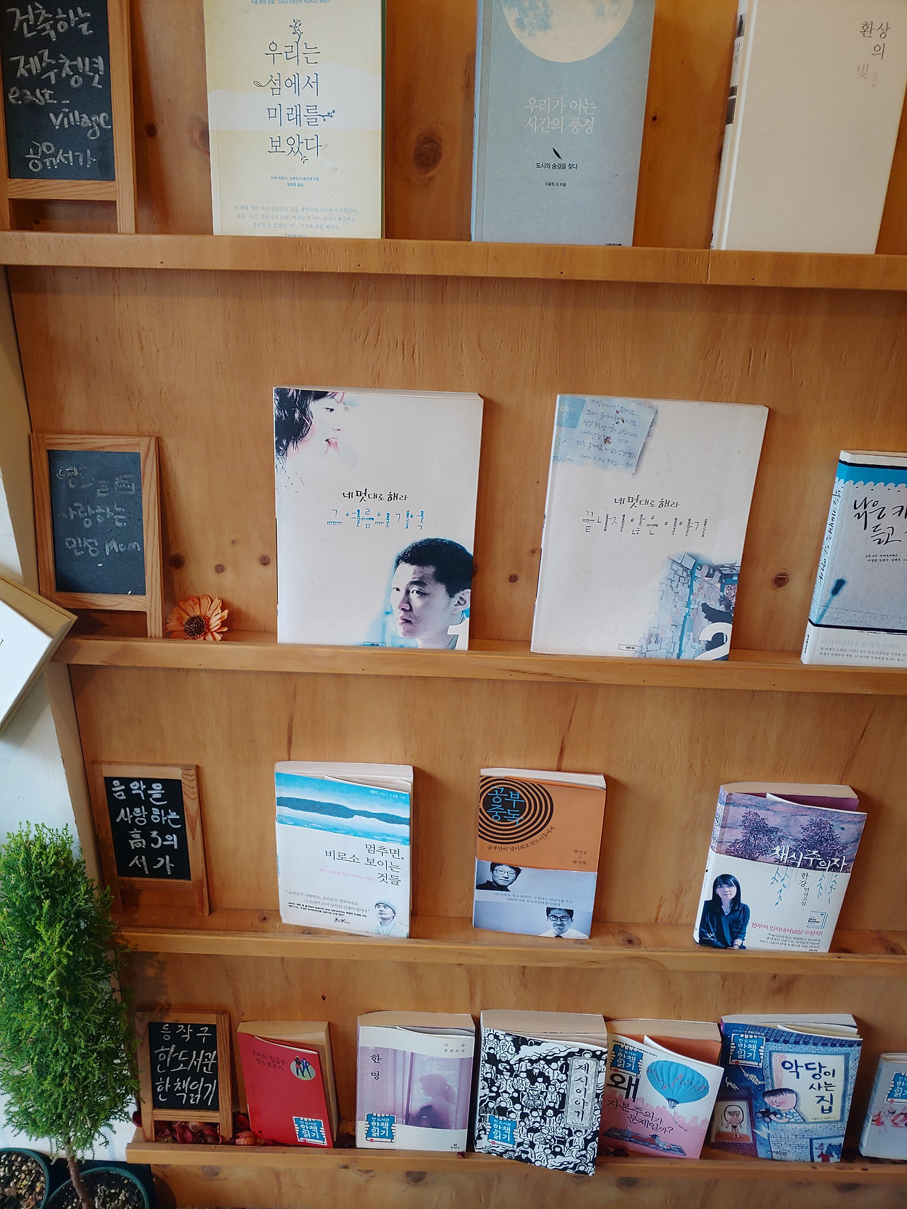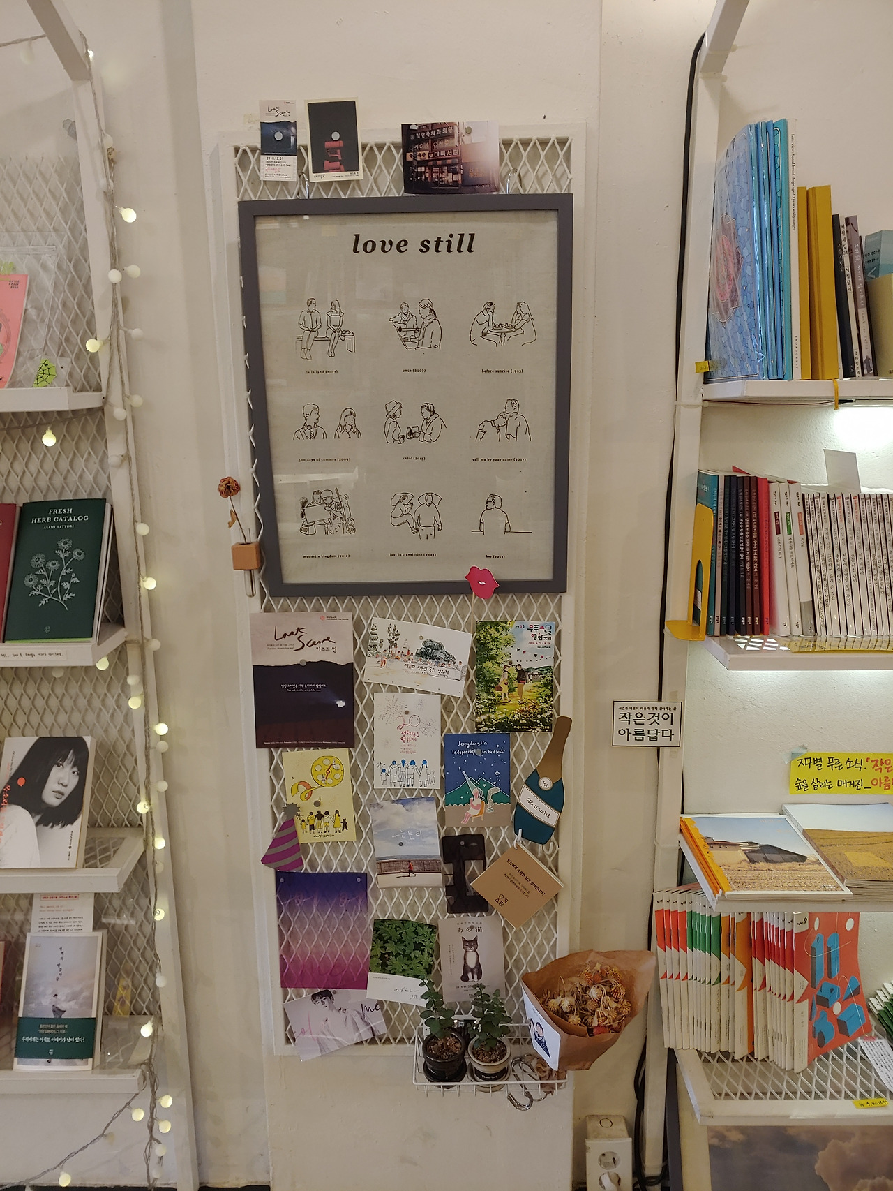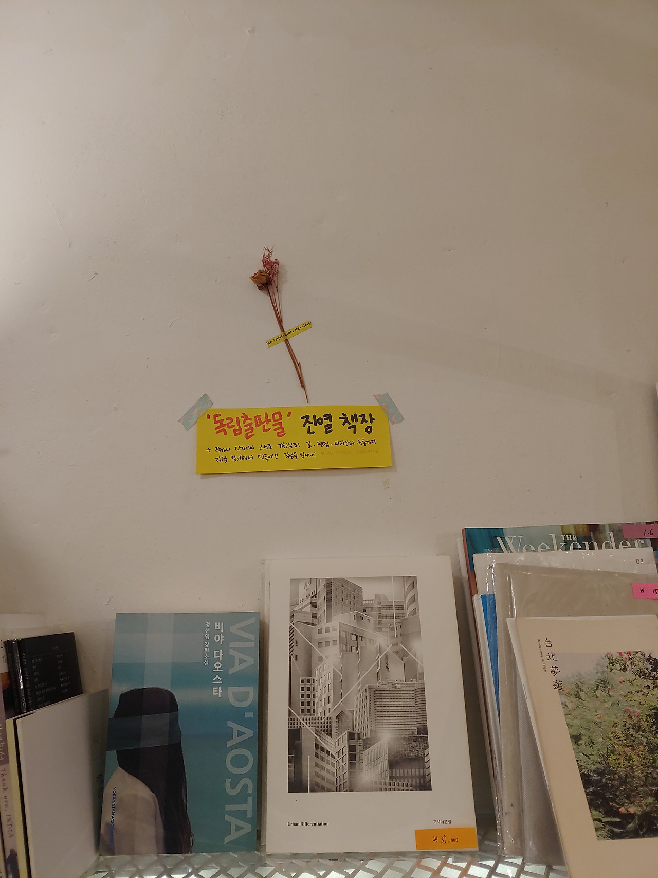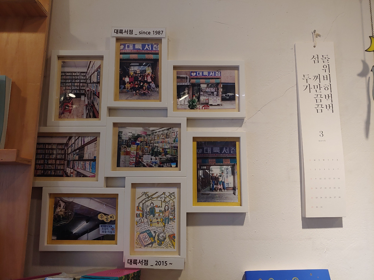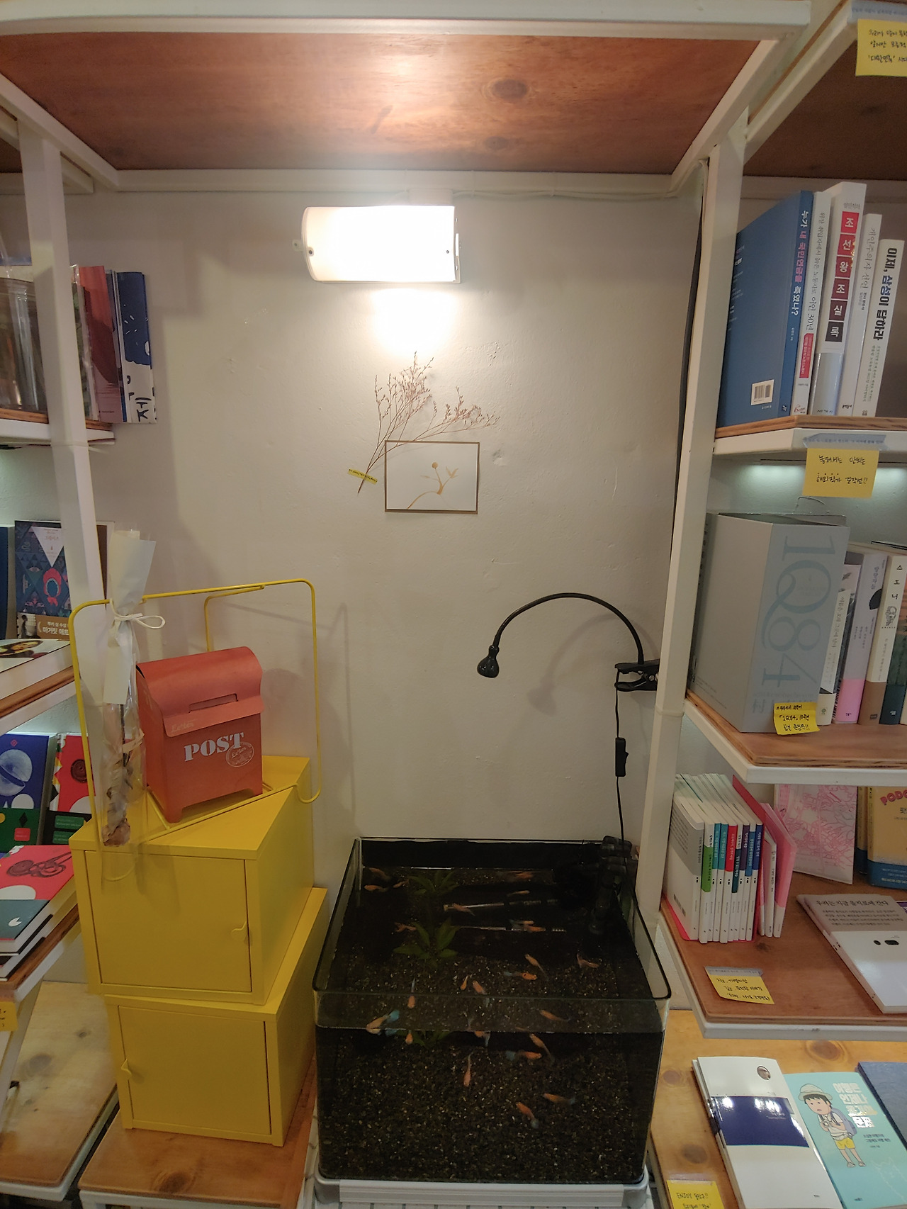 대륙서점_서점은 가게 주인의 취향이 가장 잘 드러나는 공간인 듯 하다. 1987년부터 상도동에 터를 잡고 있던 서점을 노부부로부터 사들여 젊은 부부가 운영하고 있다. 주인장과 잠시 페이퍼와 황경신 작가 얘기를 하긴 했지만 구체적으로 묻진 않았는데 사진에 찍힌 흔적들을 보니 2015년부터 인 것 같다. 어항 있는 서점은 처음 봄..