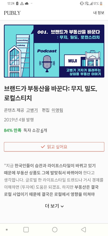 '고병기 기자가 들려주는 상업용 부동산 이야기'는 이번에 '퍼블리'와 협업을 했습니다. 퍼블리는 유료 콘텐츠 플랫폼입니다. 자기 소개가 인상적이죠. '일하는 사람들을 위한 콘텐츠 플랫폼'. 사실 많은 언론들이 유료 콘텐츠 비즈니스를 시도했지만 콘텐츠만으로 수익을 거두기는 쉽지 않습니다. 그런 점에서 퍼블리의 행보는 많은 사람들의 주목을 받고 있습니다. 저 역시 퍼블리를 관심 있게 지켜보고 있었고요. 이번에 마침 퍼블리와 협업을 할 기회가 생겼는데요. 퍼블리와 같이 새 콘텐츠를 만들면서 많은 점들을 느꼈습니다. 유료 콘텐츠이긴 하지만 퍼블리와의 협업과 그 과정에서 제가 느낀 부분들은 콘텐츠 안에 정리를 했습니다. 퍼블리와는 앞으로도 계속해서 협업을 할 예정입니다.