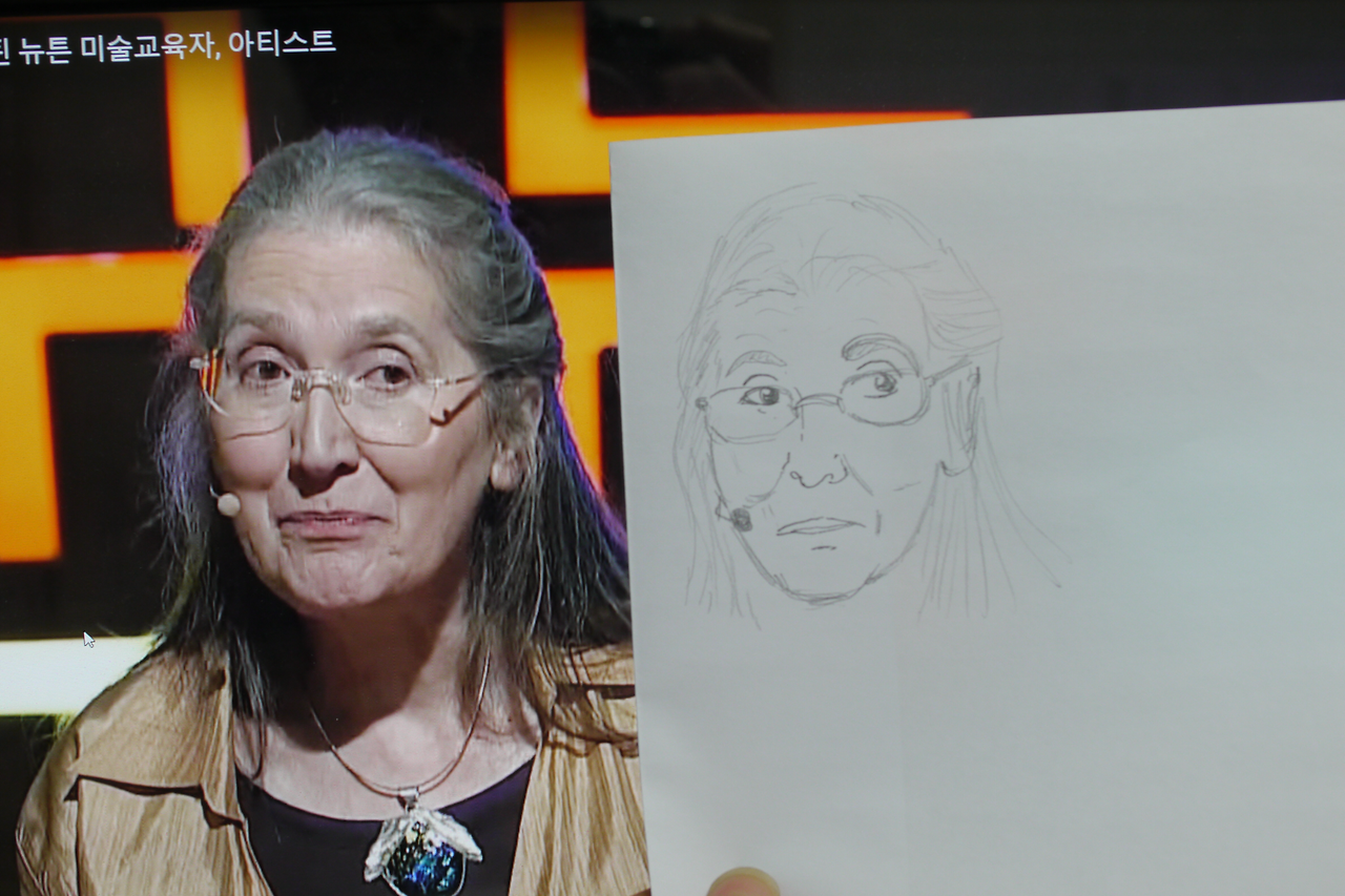 네번째로 그린 그림 입니다. 동영상을 한 번 더 보면서 그림을 그립니다. 짧은시간 끄적이기 때문에 대충할거라 생각하실지 모르지만, 획 하나 그리는게 모두 선택이더군요.