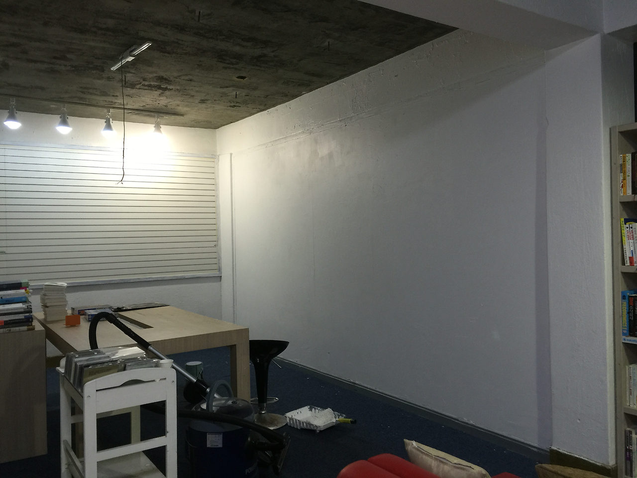 페인트를 다 발랐다. 요즘 페인트가 잘 나와서 냄새도 안나고 매끈하게 잘 발리니 기술 없이도 손쉽게 할 수 있다. 서점 들어오는 지하가 너무나 칙칙하고 어둑해서 약간 꺼리게 된다. 이곳에 흰색과 옅은 민트색을 칠해두니 훨씬 밝아졌다. 내가 이걸 해냈어! 라는 뿌듯함은 별로 없다. 누구나 칠하면 그냥 다 할 수 있은 일이기도 하니까. 그것 보다는 뭔가를 위해 과정을 만들어가는 동안은 전혀 다른 여행을 하기 마련이니 그런 경험을 얻은 것이야말로 손수 무언가를 만든다는 가치를 설명하기엔 충분하지 싶다.