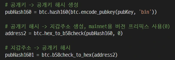 double-SHA-256과 RIPEMD160 알고리즘을 이용해 공개키 해시 값을 계산한다.