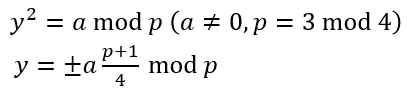 여기서 사용하는 secp256k1에 정의된 p는 4로 나누었을 때 나머지가 3이므로 위의 정리를 쓸 수 있다.