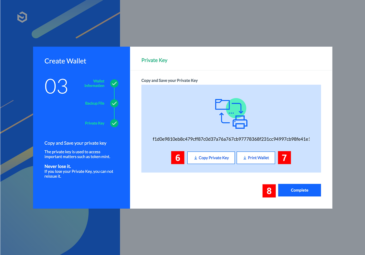 개인키를 복사하거나 인쇄해 안전하게 보관합니다.