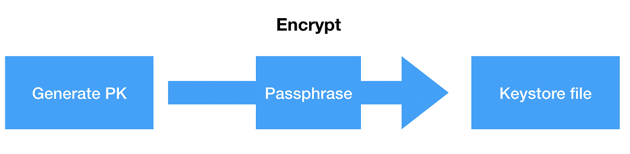 Passphrase를 통해 암호화된 PK를 키스토어 파일에 담아서 저장합니다.
