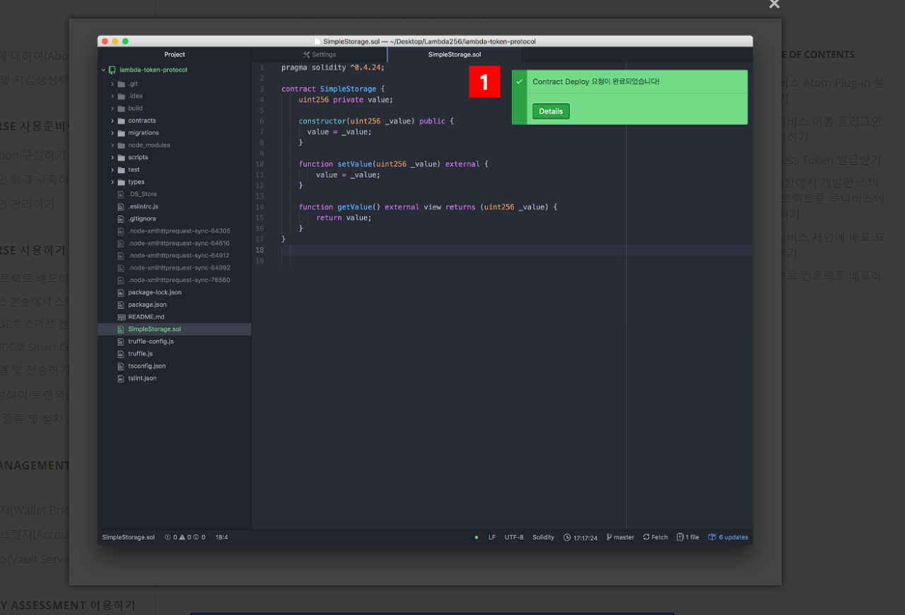 이후 스마트 컨트랙 배포를 할 수 있습니다.