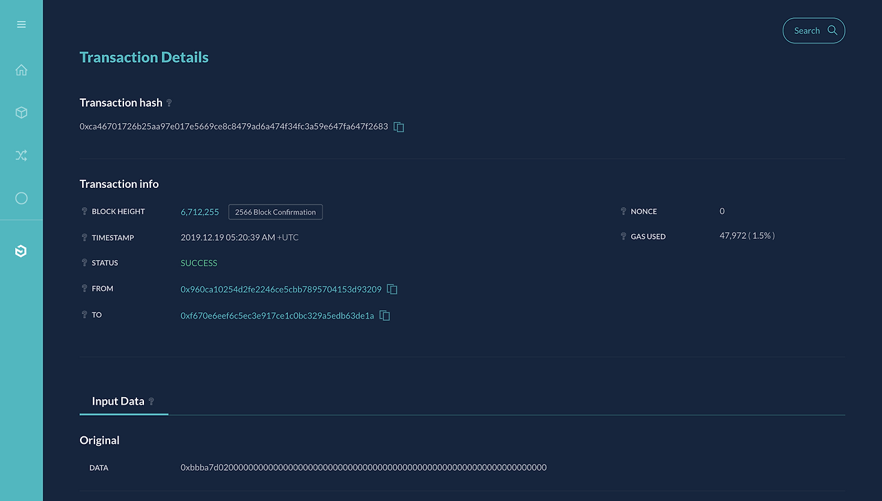 해당 플로우에 따라 진행을 했으며 문제가 없었습니다. 또한 실제 트랜잭션이 저희 체인에 올라간것을 확인하기 위해 Luniverse Console에 들어가 확인해 봤습니다.
