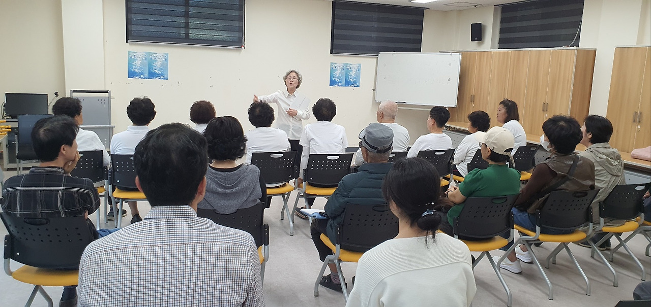 사랑방 원장님의 수개 월에 걸친 지도로 합창 발표를 무사히 마쳤습니다. 7~80대가 주축이고 90세까지 포함된 그야말로 진짜 노년세대들의 합창 연습에 우여곡절이 많았습니다. 그 과정에서 수많은 사람들의 도움이 있었고, 영도문화도시센터 관계자들의 헌신적인 지원도 정말 컸습니다. 무슨 일이든 그것이 완성되기까지에는 숱한 사연이 들어갈 수밖에 없겠지요. '과꽃'을 비롯한 여러 곡을 합창하여 참석자들의 우레와 같은 박수를 받았습니다. 이렇게 나이 들어도 사람들로부터 큰 박수를 받으니 행복하기도 하고 즐겁고 기쁘기도 한가 봅니다. 원장님의 헌신적인 지도가 이 분들의 노력과 어울려 아름다운 합창제가 되었습니다. 무엇보다 하루 하루가 별 다른 일 없이 그저 흘러갈 수 있는 노년 세대들에게 이 합창 발표가 정말 진정한 삶의 청량제 같은 역할을 하는 것이지요.