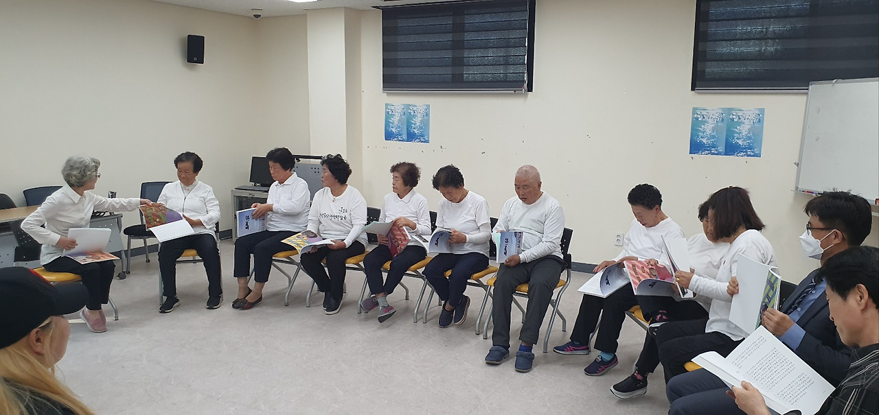 각저 자신의 사진이 있는 부분을 펼쳐서 기념 촬영도 하고, 원장님의 진행에 맞춰 각자 소감 발표부터 전개합니다. 일반적인 북토크에 가면 작가가 자신의 책 홍보도 열심히 하고, 지난 삶도 풍부하게 털어놓지만 이 분들은 그저 고개를 숙이면서 '감사합니다.'만 연발합니다. 북토크 경험이 전무한데다 자신의 삶이 든 책을 펼치니 만감이 교차하는 듯합니다. 원장님의 요청에 따라 우리들이 앞에 가서 격려의 악수를 하게 되었습니다. 다른 분들은 한두 번밖에 못 봐서 그런지 서먹서먹한 듯합니다. 그러다가 제가 한 분씩 두 손을 꼭 잡고 "수고했습니다. 글쓰신다고 힘들었지요."라고 말을 건네니 아예 제 손을 놓치고 않고 한 분께서 제 얼굴을 빤히 올려다 보십니다. 그러다 울컥 하는 표정이 역력합니다. 제가 다시 한 마디 더 건넵니다.
