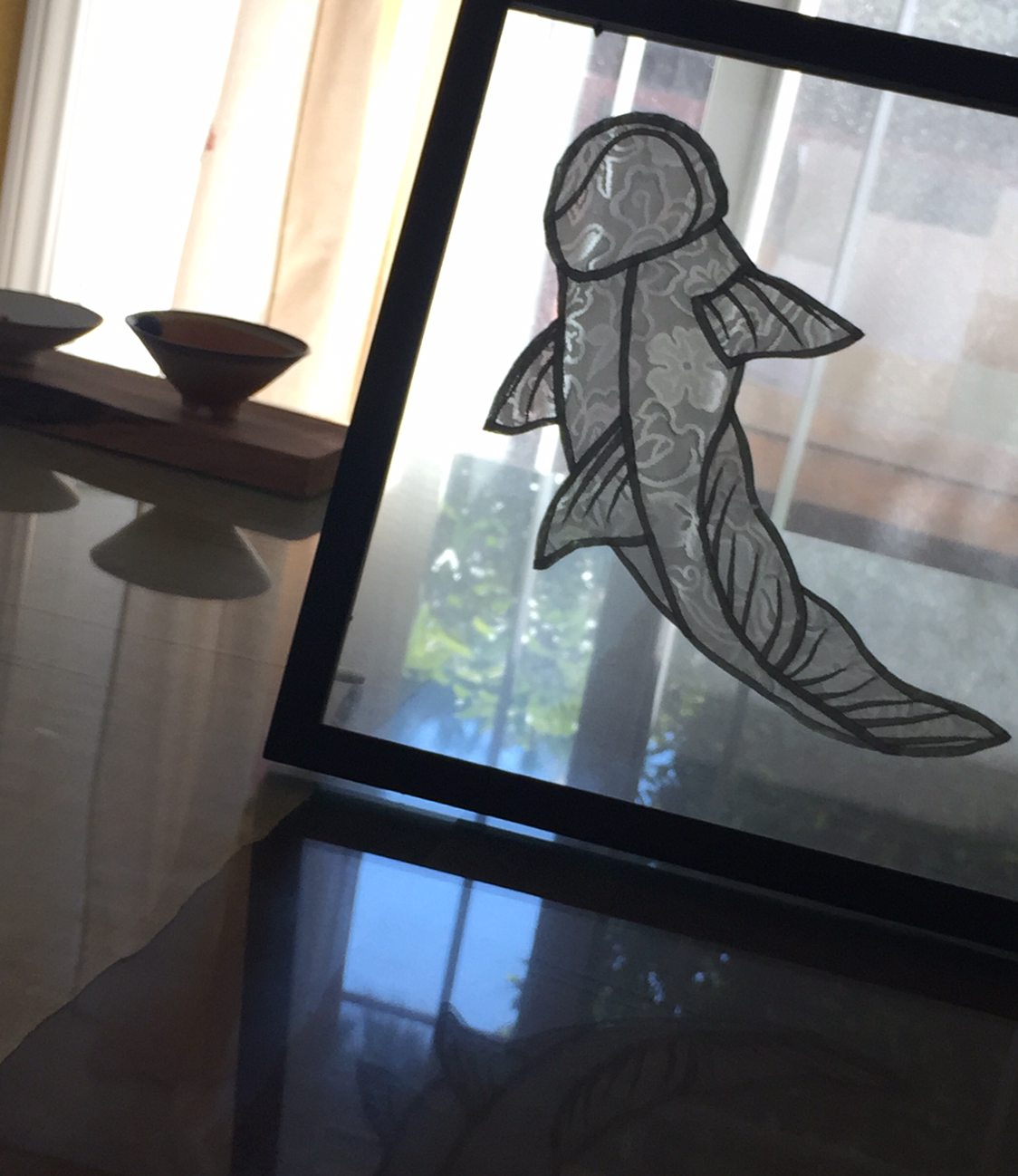 반투명으로 비치는 비단인 갑사를 가지고 창문에 거는 발을 만드는 기법인 '쌈솔' 바느질을 해 내가 좋아하는 물고기들을 양껏 만들었는데, 모두 눈이 없는, 속이 훤히 보이는 물고기들이다.