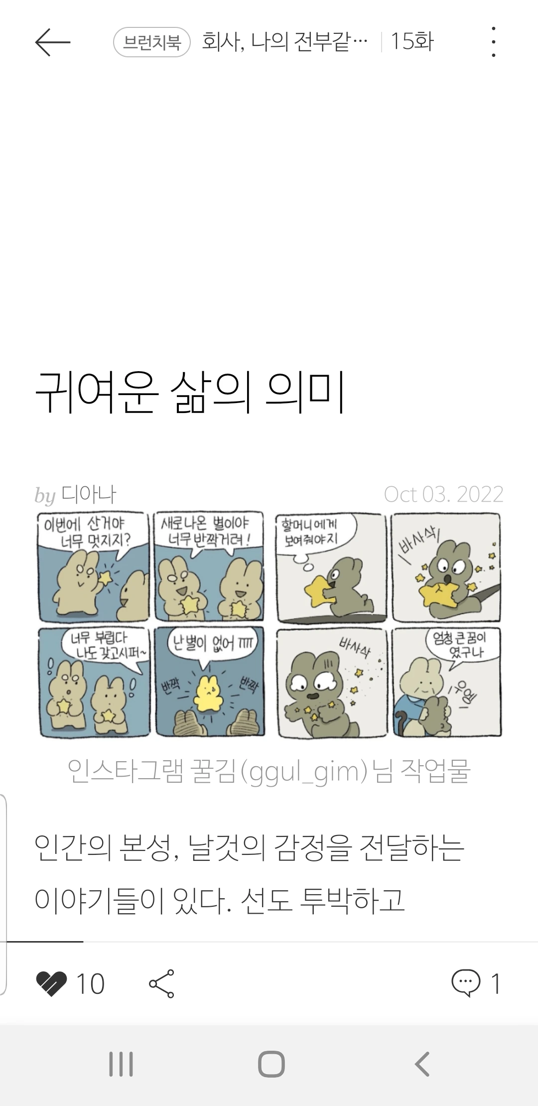 ♤ 디아나 작가님 글 '귀여운 삶의 의미'에 단 댓글
