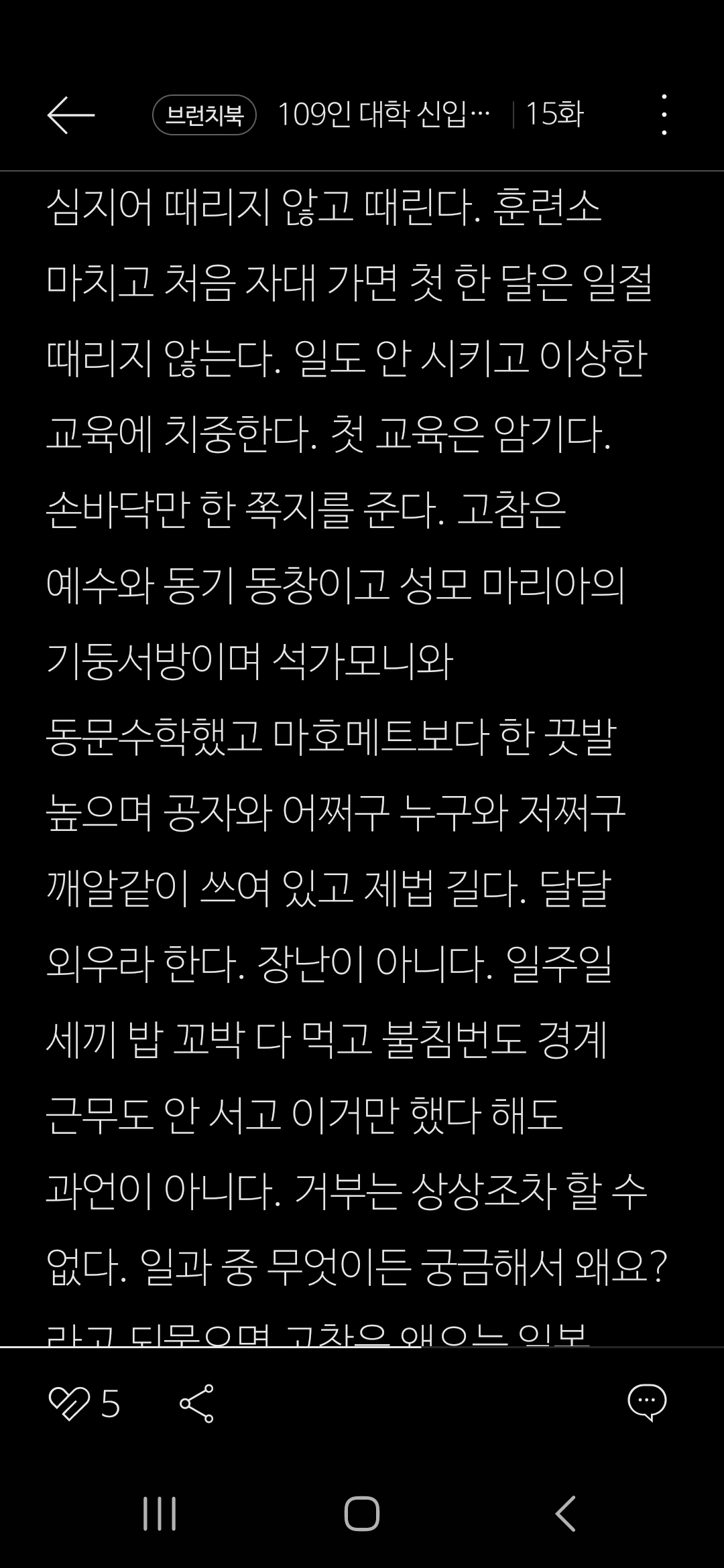 ♤ 입대 7개월까지 스스로 군 부적응자였다. 얼마후 이 넷 병장들이 날 잡아 작정한다. 막내 이등병인 나를 집단 구타. 군 병원에 장기 입원.