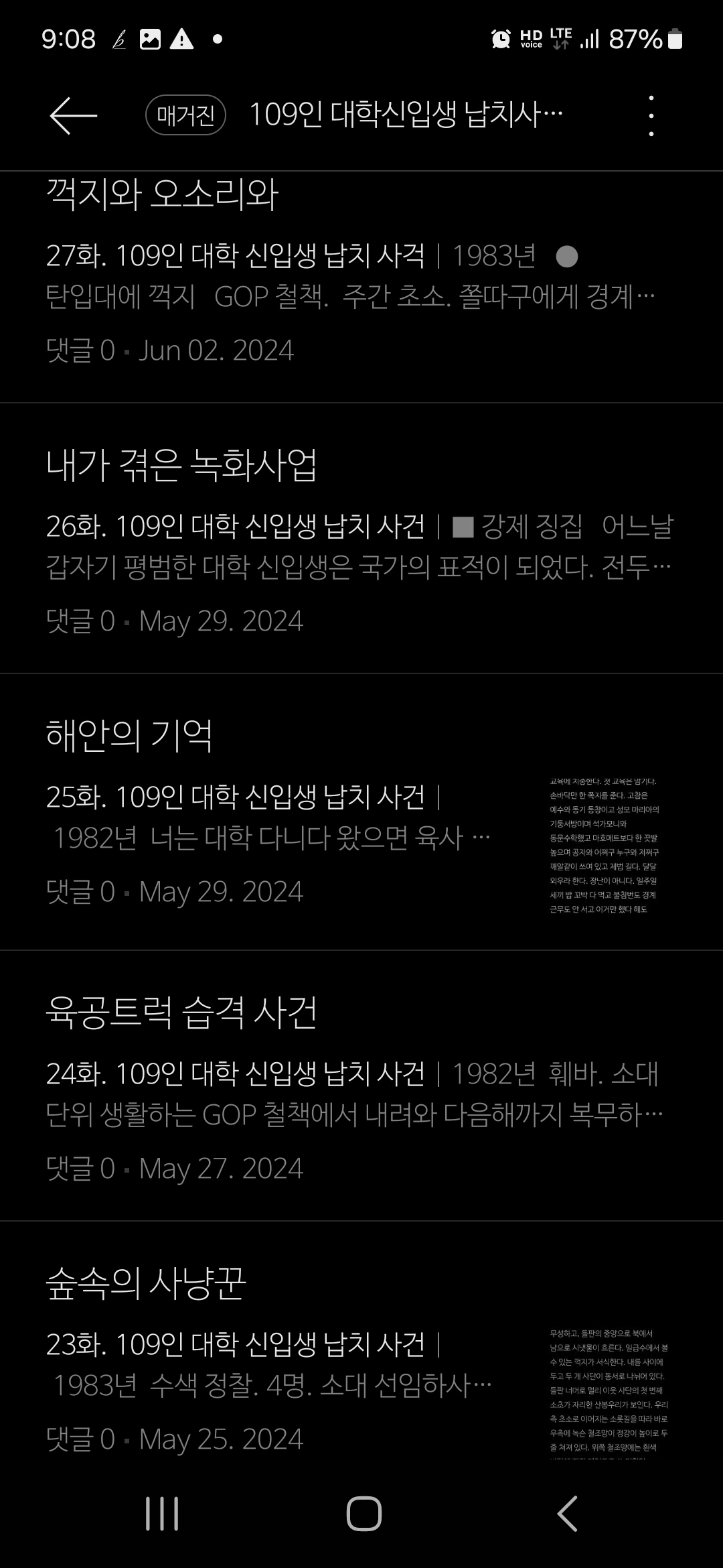 23화. 109인 대학 신입생 납치 사건 | 1983년 수색 정찰. 4명. 소대 선임하사 인솔. 나는 처음이다. 시간여 산을 내려간다. 평지 소롯길. 중간 중간 사주경계 폼 잡아보고. 분대 이동시 각 앞뒤 양옆