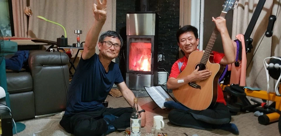 여름밤 산장 페치카 황덕불에 기타 반주로.