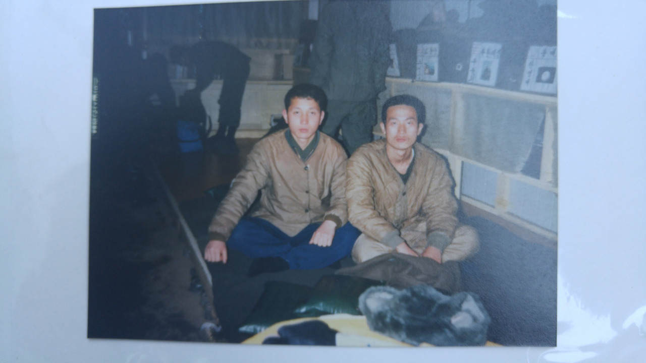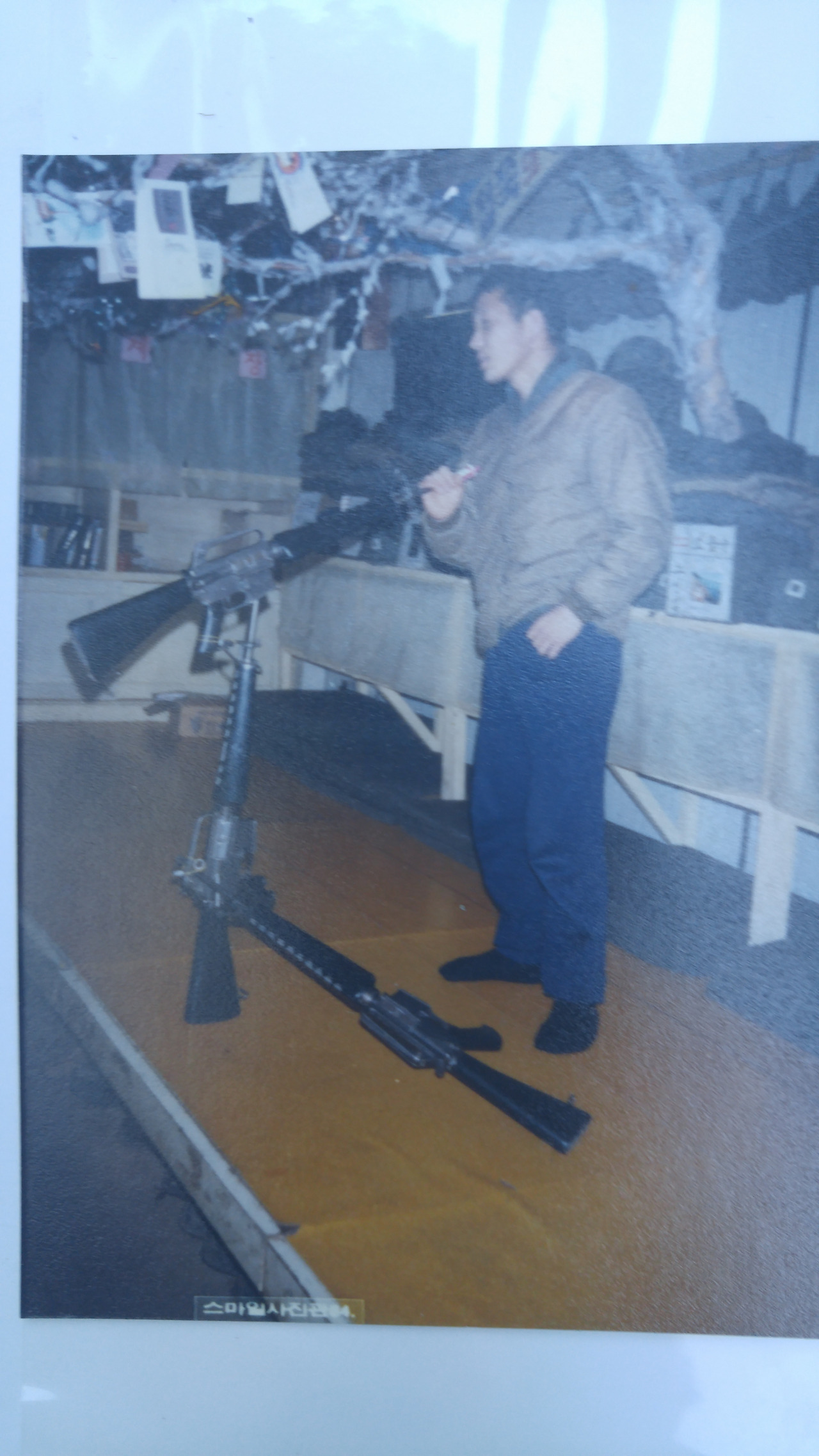 앞에서부터 김 병장, 강 병장, 주인공 (세 번째 군복 입고 사진기 바라보는 이)