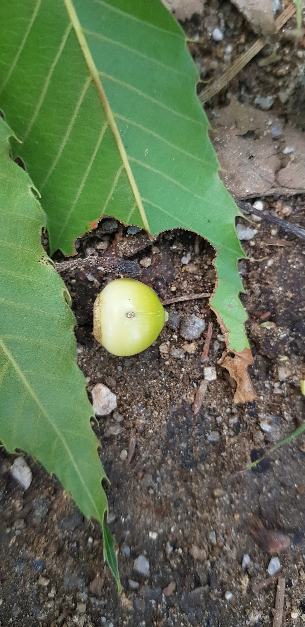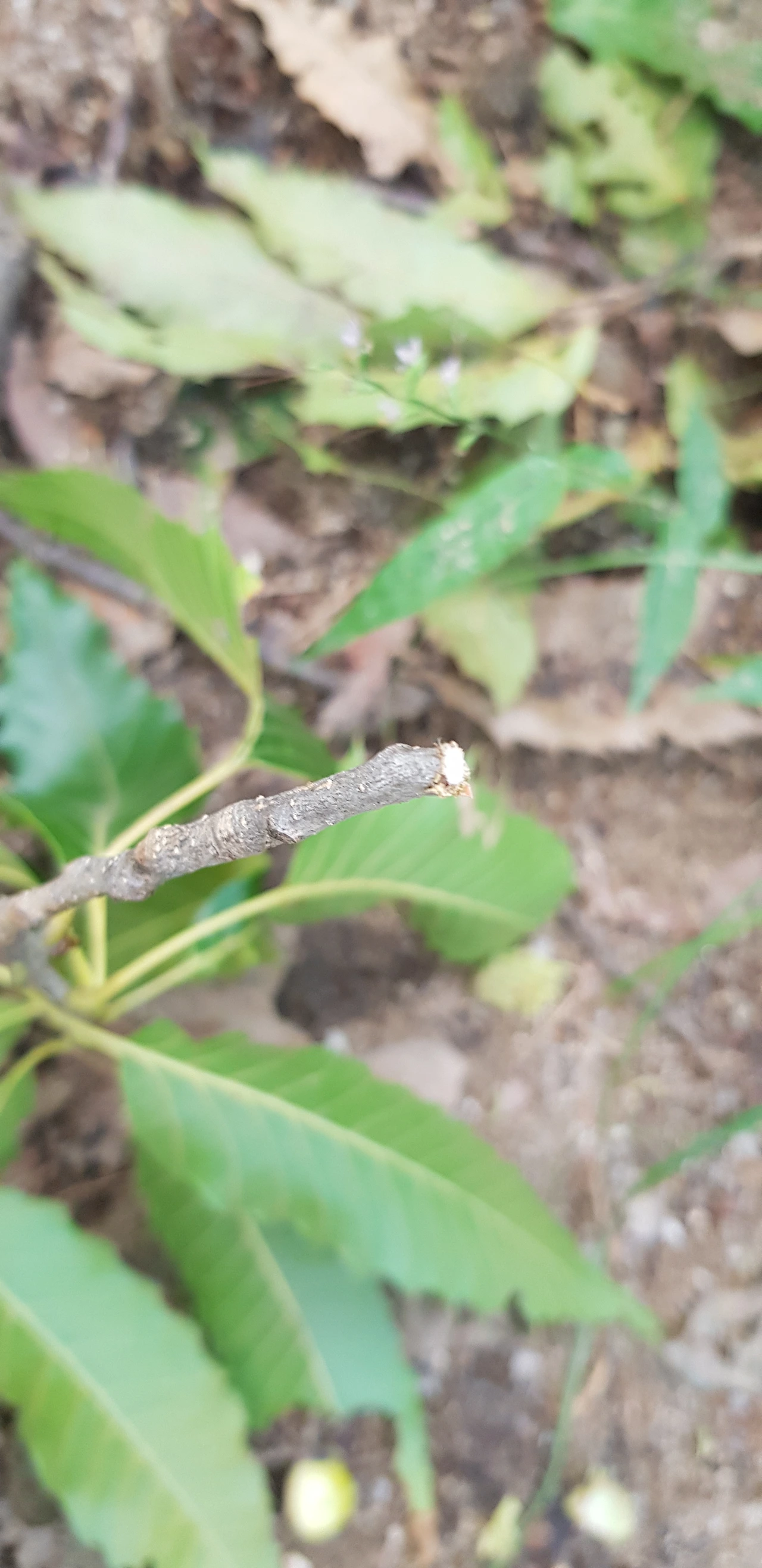 도토리껍질 밑동 약한 부분보다 단단한 가지를 힘들여 잘라서