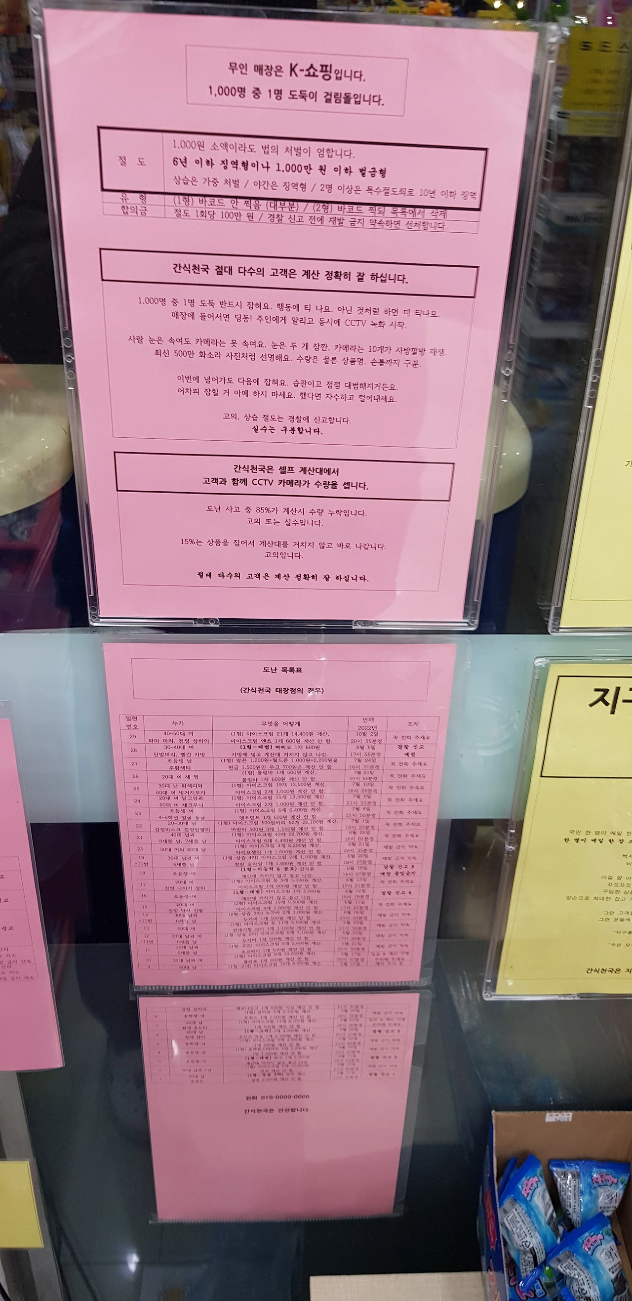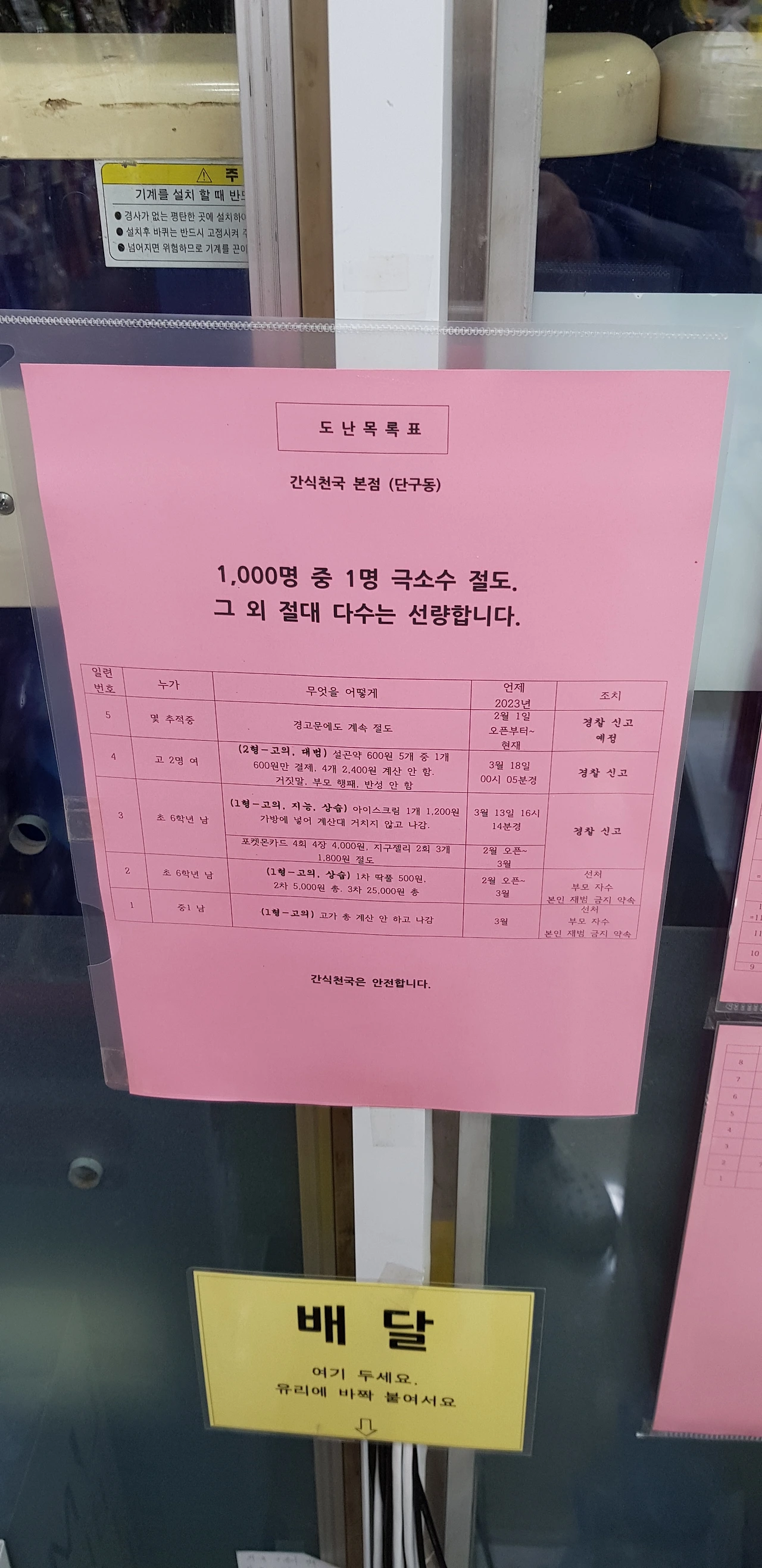 경고 딱지 3장+1호점 도난 목록표 3장만으로 절도 근절 수렴.