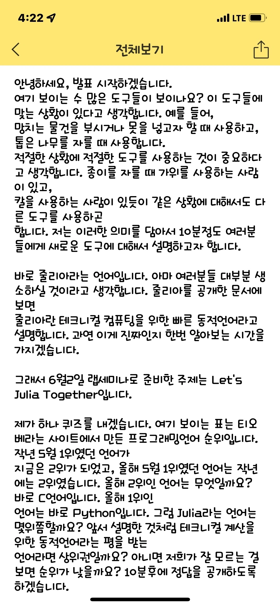 1. 오늘은 지방 선거날이다. 나도 성인 돼서 상당히 투표를 많이 한 것 같다. 분명 저번 지방선거도 투표했던 기억이 있는데 어느새 이번 지방선거가 왔다. 물론 나는 투표를 했기 때문에 별 생각 없고 내일 있을 세미나를 다 만들기에 집중했다.
