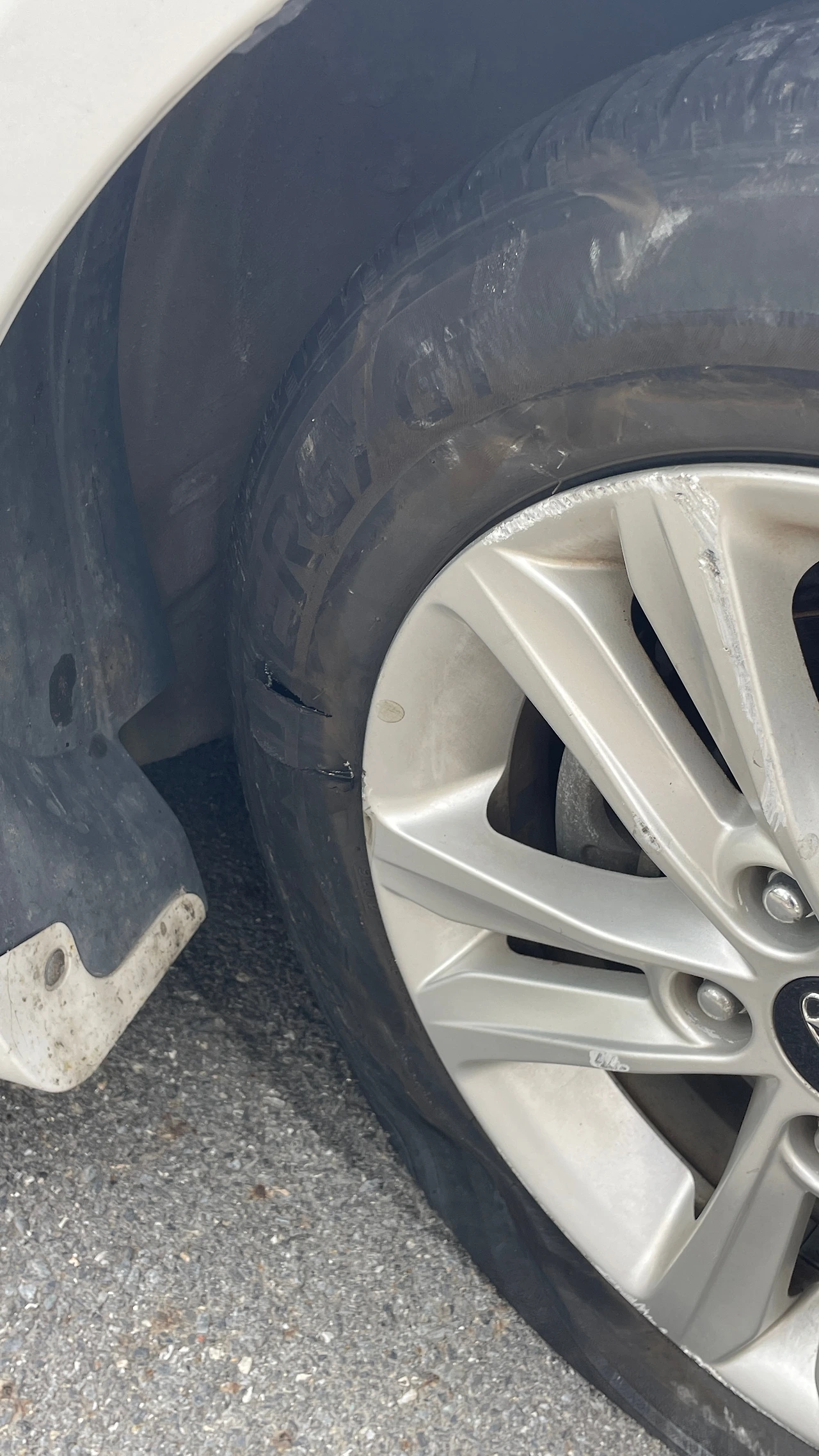 '아차차, 연석을 긁었구나' 생각을 했다. 그래서 차를 왼쪽으로 살살 돌렸지만, 계속 드르륵 소리가 났다. 이렇게까지 연석을 긁을 수가 있나 생각하면서 나는 차에서 내렸다.